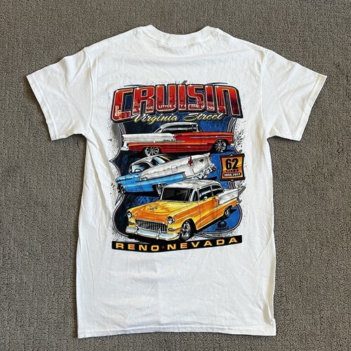Cruisin Virginia Street 2017 Reno Nevada T Shirt Sz Small White Hot Rods NWOT.