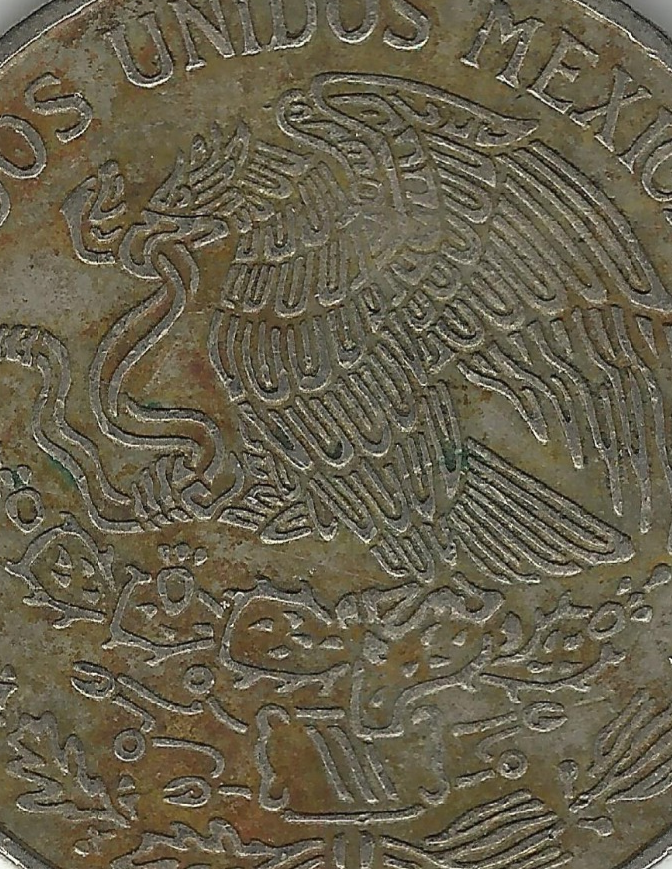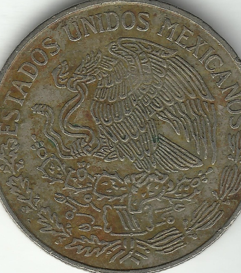 1972 Mexico 1 Un Peso Coin Eagle perched on cacTus & José María Morelos