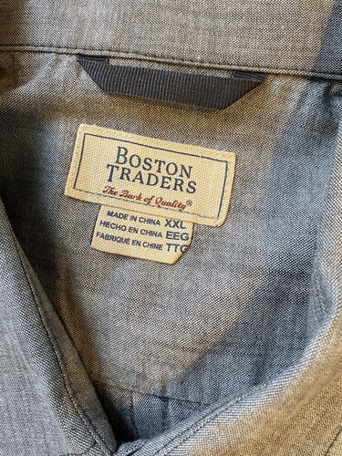 Boston Traders Men's Short Sleeve Grey Chambray Shirt, Men's XXL