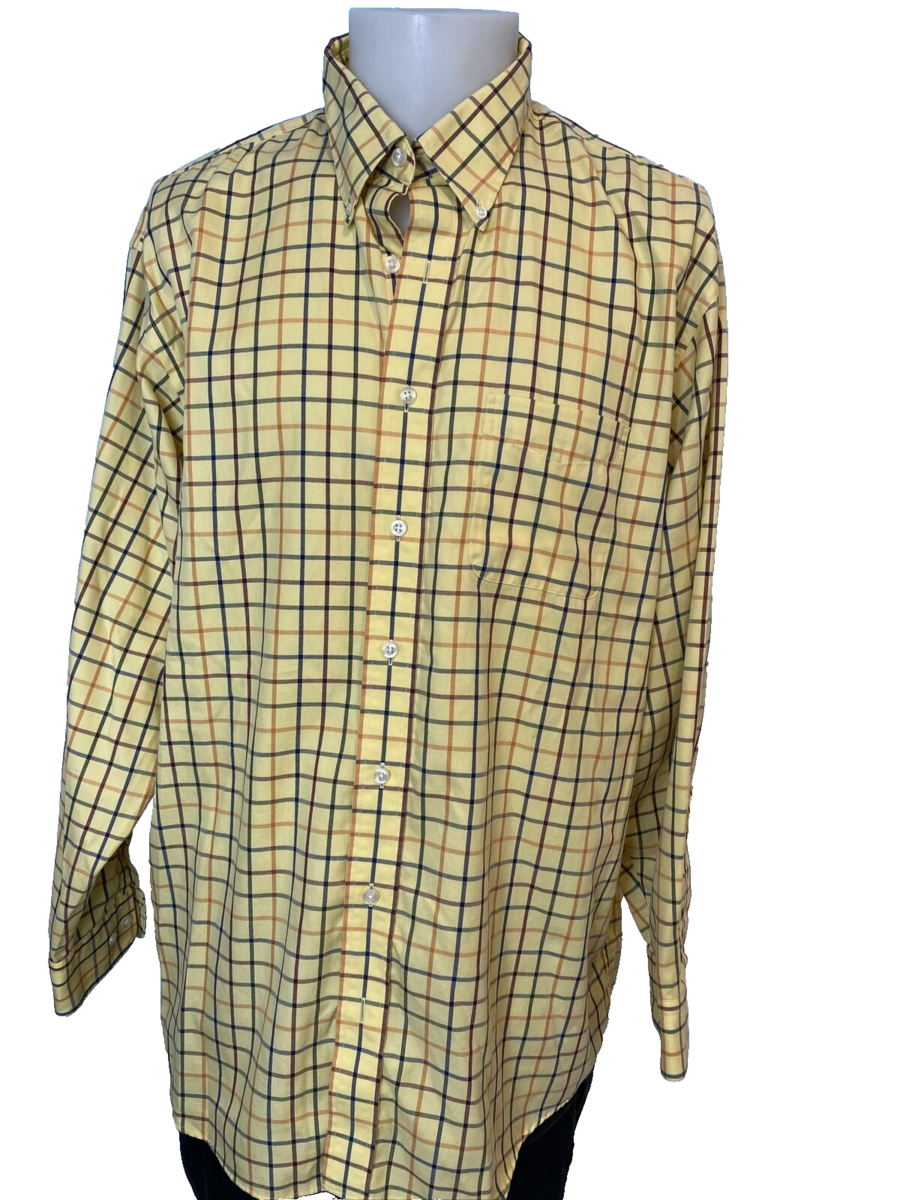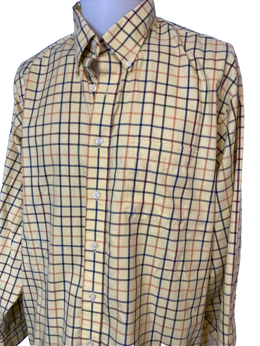 Jon Michael Cane Yellow, Blue, Green, Red Checked Long Sleeve Button Down Sz XL