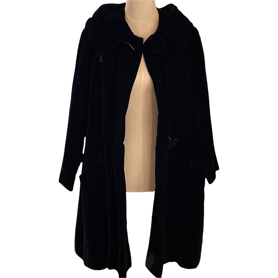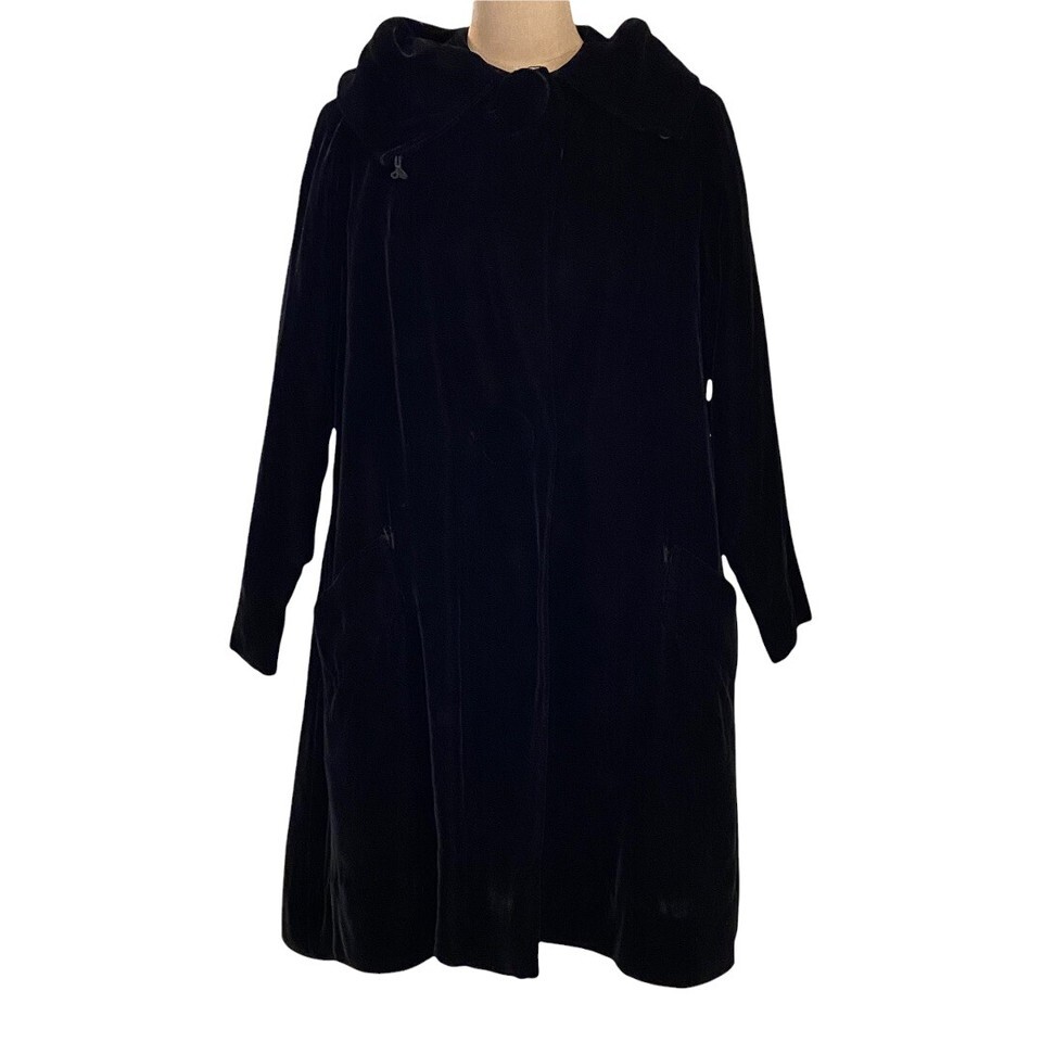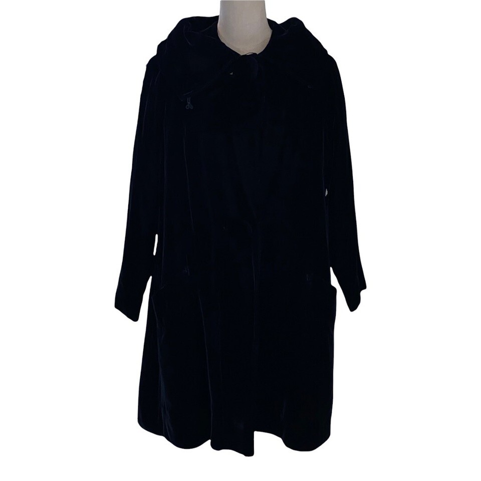 Vintage Black Union Made Gorgeous Black Velvet Women's Coat XL