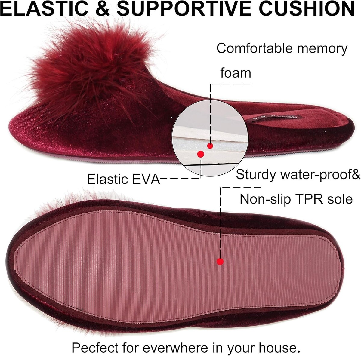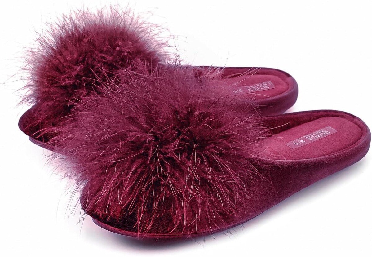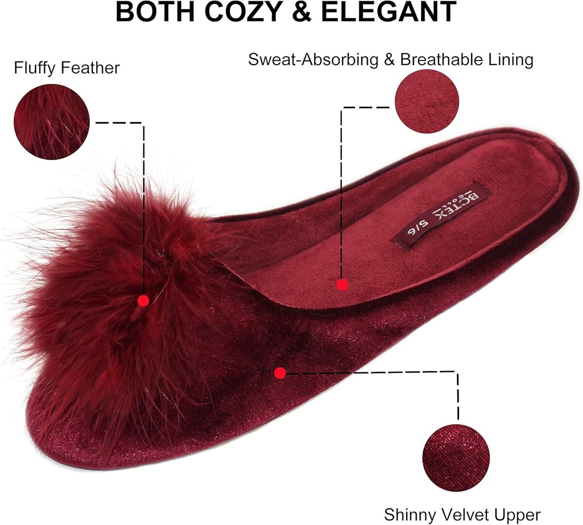 Velvet Memory Foam Slipper Wine Red Feather and 50 similar items