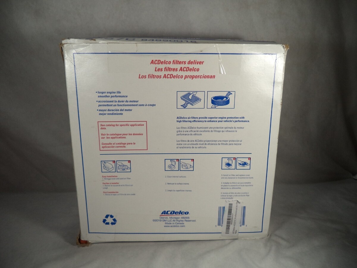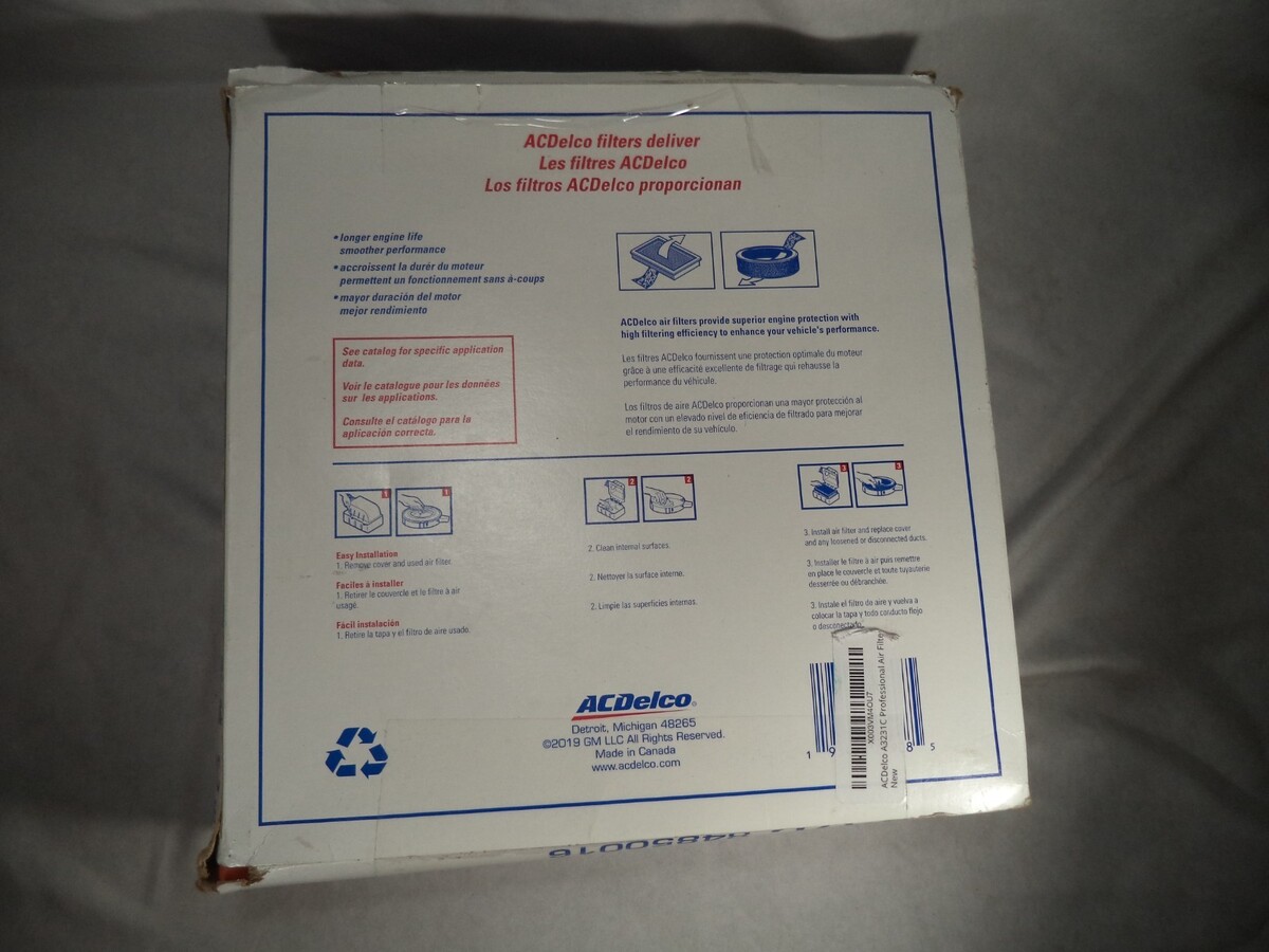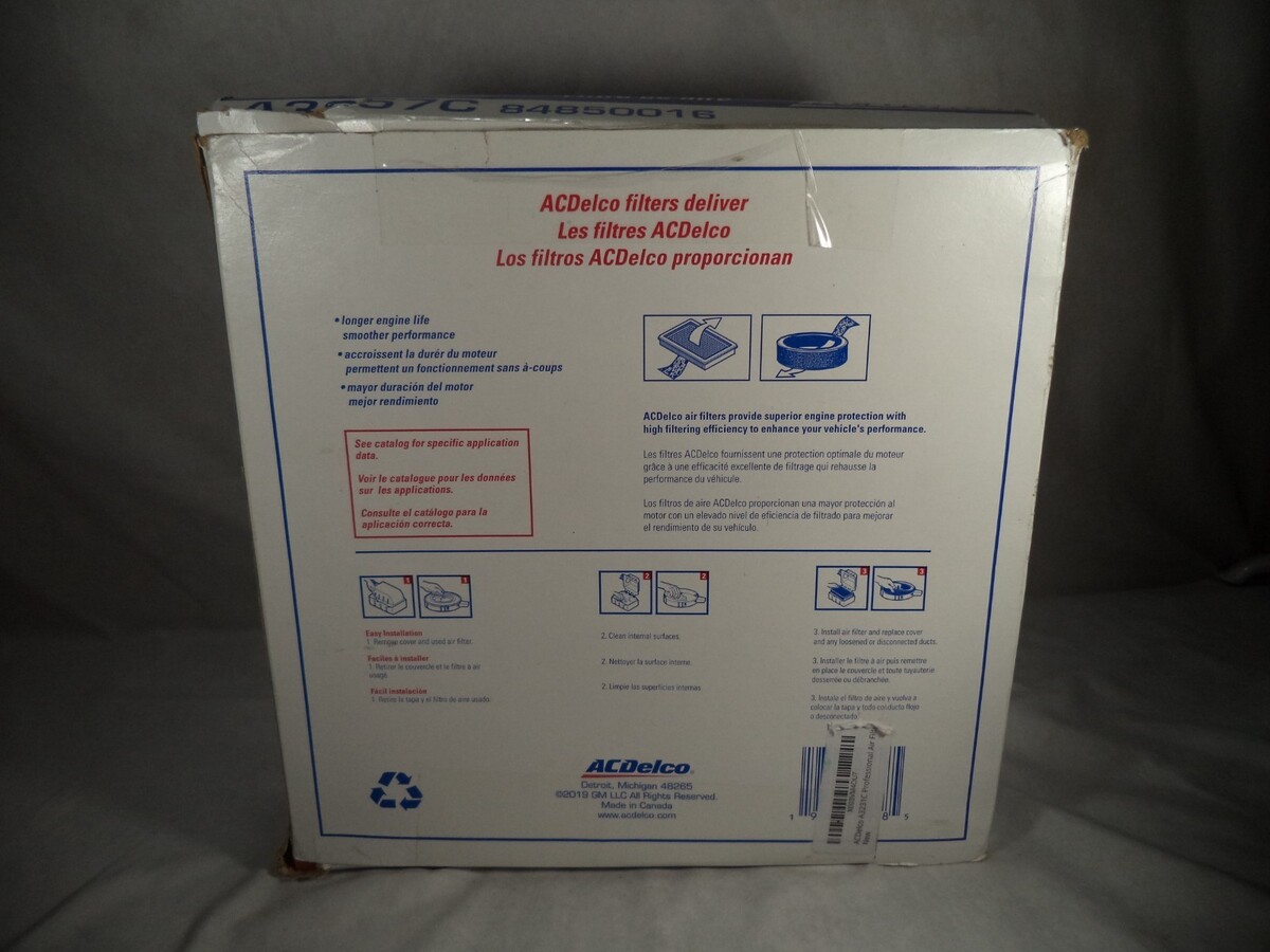 Description: The Genuine OEM A3257C ACDelco Air Filter 6.6 Dura is a high-quality air filter designed for diesel vehicles. It is a genuine OEM product from ACDelco, ensuring a perfect fit and reliable performance. The filter is specifically designed for the 2017-2019 Chevrolet Silverado and GMC Sierra 6.6L diesel engines, with interchange part numbers 84850016 and A3257C. Weighing 2.5 lbs., this air filter is a durable and essential component for maintaining the fuel system of your vehicle.
