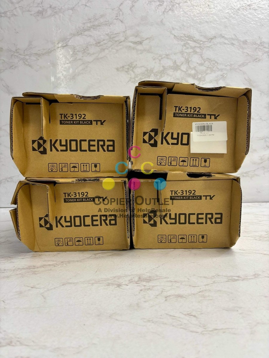 Lot Of 4 Open Genuine Kyocera TK-3192 Black Toner Kit New-Open Box (4 Toners, 2 Waste Containers) ****Please See Reference Photos**** Same Day Shipping For ECOSYS M3660idn,M3860idn,M3860indf, P3060dn,P3260dn Listed By: Renee (Sales Team) ?Don?t dream of winning, train for it!?~Mo Farah(A positive moment brought to you by Help Resale) Copier Outlet (A Division of Help Resale) Copier Outlet was established in 1993. We buy and sell both domestically and internationally and have wide assortment of copiers, consumable and accessories of all popular brands. All of our copiers are in house and available for your inspection. They all have been tested and rated for functions, cosmetics and overall appearance. Our consumable and accessories selections include toners, imaging units, developers and copier parts such as fax board, fixing unit, fuser unit, roller, cleaning brush, drum blades and etc. For more detailed information on our copiers, consumables and accessories, please feel free to give us a call. We are more than happy to assist you with the pricing and guide you to find the copiers, consumable and accessories you wish to buy. Best Regards, Copier Outlet Sales Team Monday - Friday: 9:00 am to 5:00 pm (PST) Copier Clearance Center Promo Video - YouTube Video will open in a new windowUsing the App? Paste link into a browser window: [isdntekvideo] .ytvideo * { box-sizing:border-box; } .ytvideo { margin:.5em auto 40px auto; max-width:480px; font-family:arial; text-align:center; position:relative; min-height:120px; background-color:#555; } .ytvideo p { position:absolute; margin:0; color:white; background-color:rgba(0,0,0,.5); } .ytvideo .yt_hd { font-size:16px; width:100%; height:28px; line-height:28px; text-align:left; top:0; left:0; padding-left:10px; overflow:hidden; } .ytvideo .yt_ft { font-size:12px; width:100%; bottom:0; left:0; } .ytvideo img { display:block; max-width:100%; border:0; } .ytvideo a:after { content:"\A0\25BA"; position:absolute; width:60px; height:50px; left:0; top:0; right:0; bottom:0; margin:auto; border:0; border-radius:10px; color:white; background:rgba(0,0,0,.6); font-size:24px; line-height:50px; cursor:pointer; } .ytvideo a:hover:after { background:#CC181E; } .ytvideo .yt_inp { position:absolute; top:100%; left:0; width:100%; text-align:center; padding:.5em .2em; xfont-size:18px; border:0; color:white; background: rgba(0,0,0,.7); } @media(max-device-width:960px){ .ytvideo { margin-bottom:60px; } .ytvideo .yt_inp { padding:1em .2em; } } All product and company names are trademarksTM or registered trademarks of their respective holders. Use of them does not imply any affiliation with or endorsement by them.