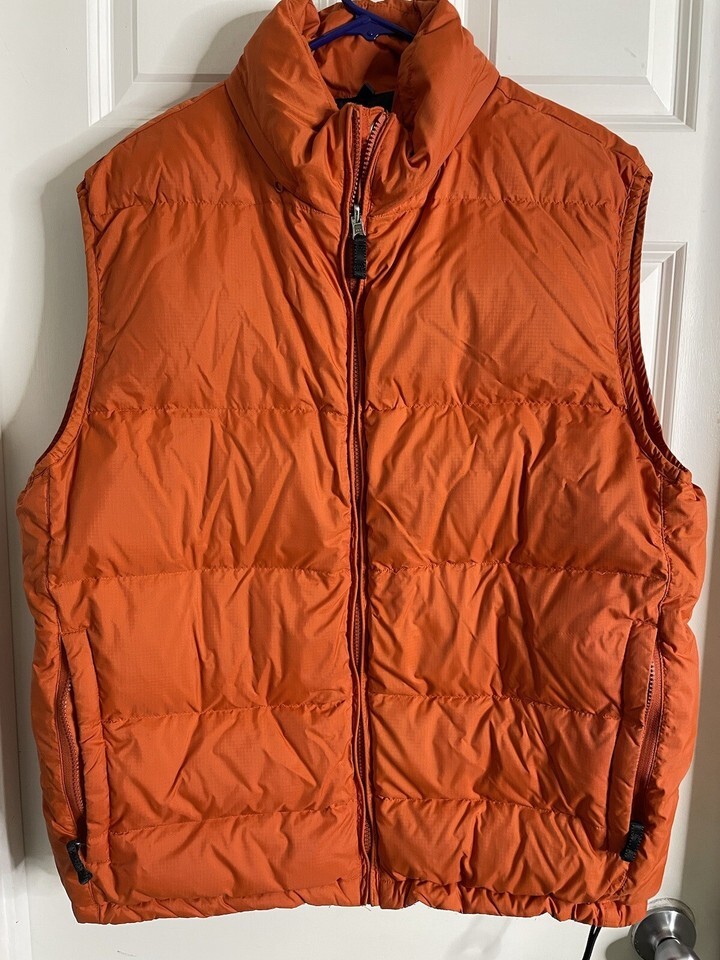 Vintage GAP Men's Size XL Goose Down Reversible Puffer Vest Packable Hood.