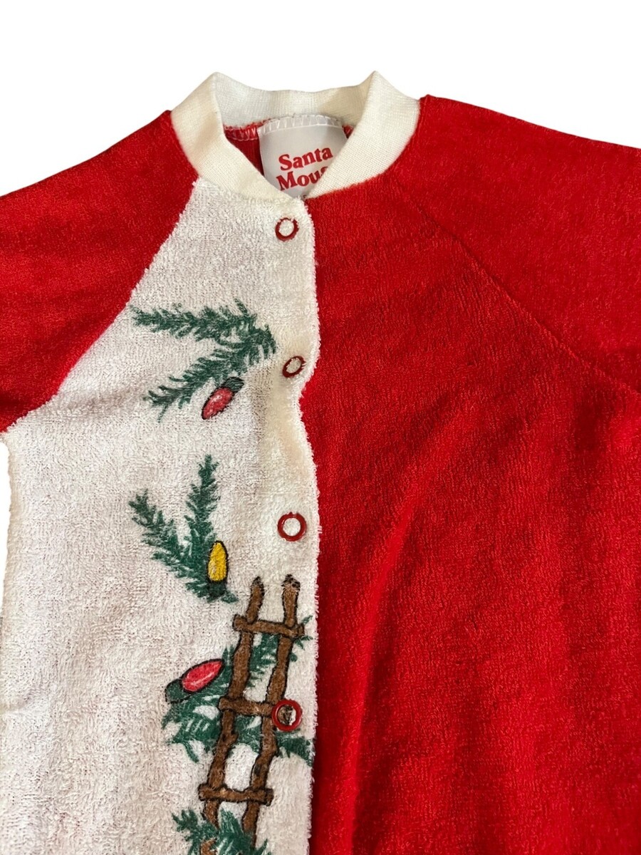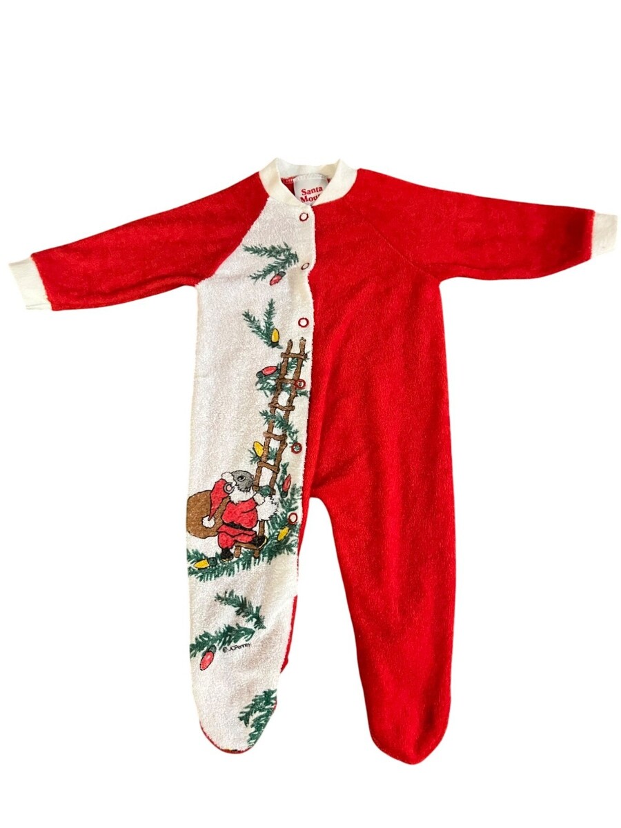 vintage baby, santa mouse, jcpenney, newborn sleeper, newborn one piece, baby footie, holiday baby outfit, christmas sleeper, made in usa, vintage infant, retro baby clothes, baby pajamas, baby sleep n play, polyester sleeper, newborn pajamas