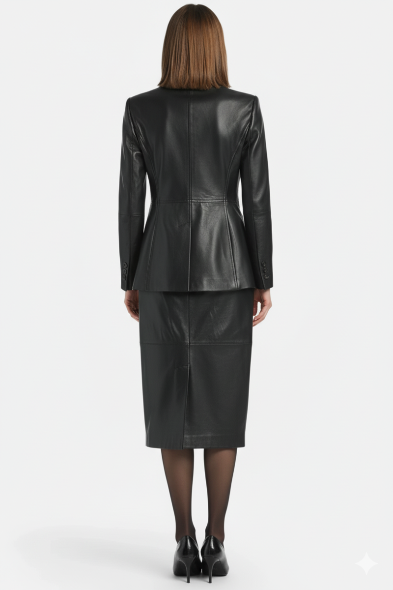 Blazer Formal Leather Office Women's Black Lambskin Genuine Handmade Designer/MN