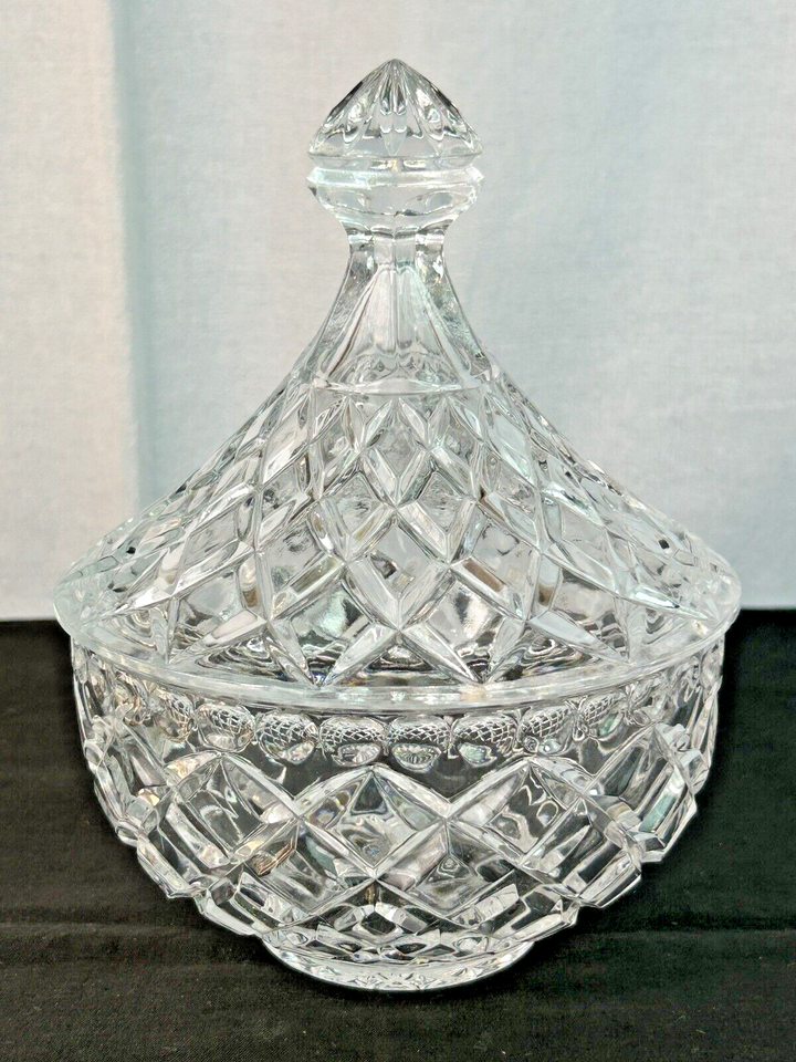 HTF FEDERAL WINDSOR CLEAR CRYSTAL LARGE CANDY JAR & LID 8 1/2” TALL X 6.5" WIDE