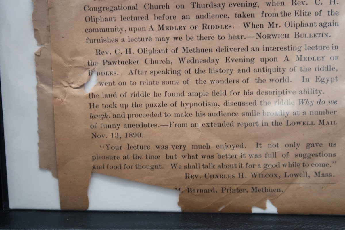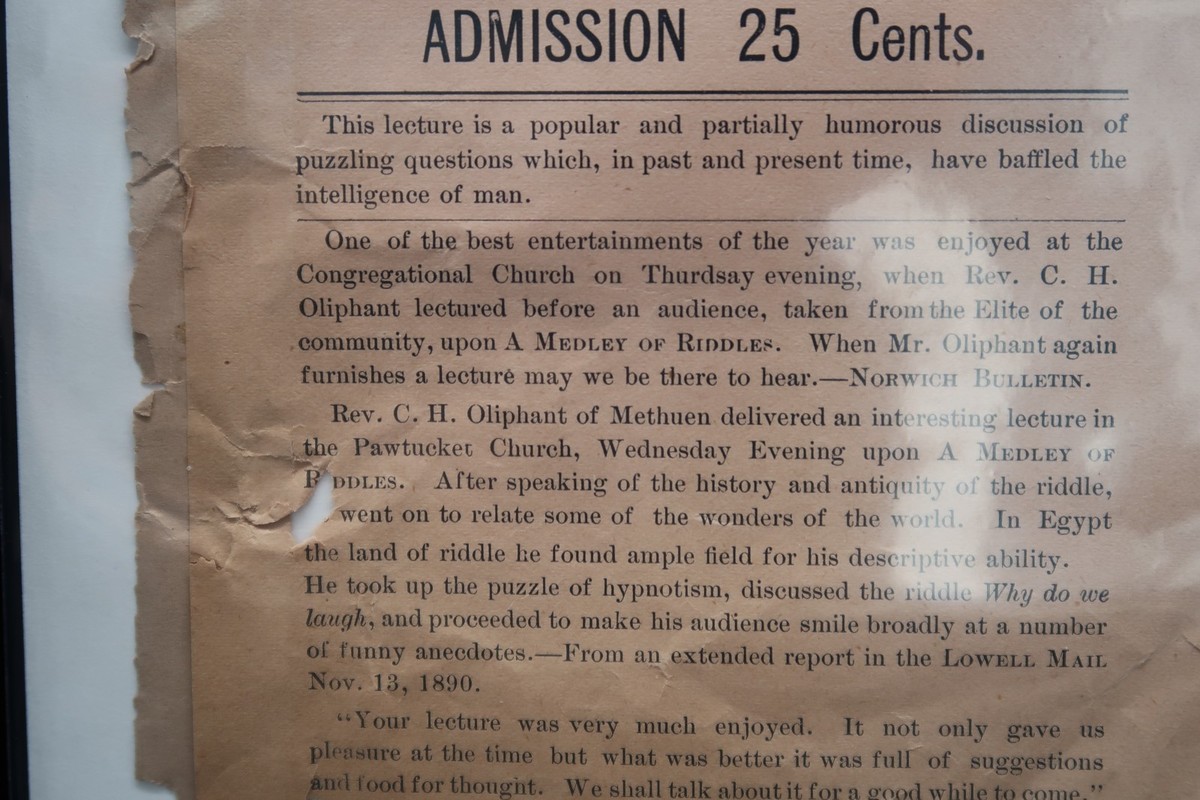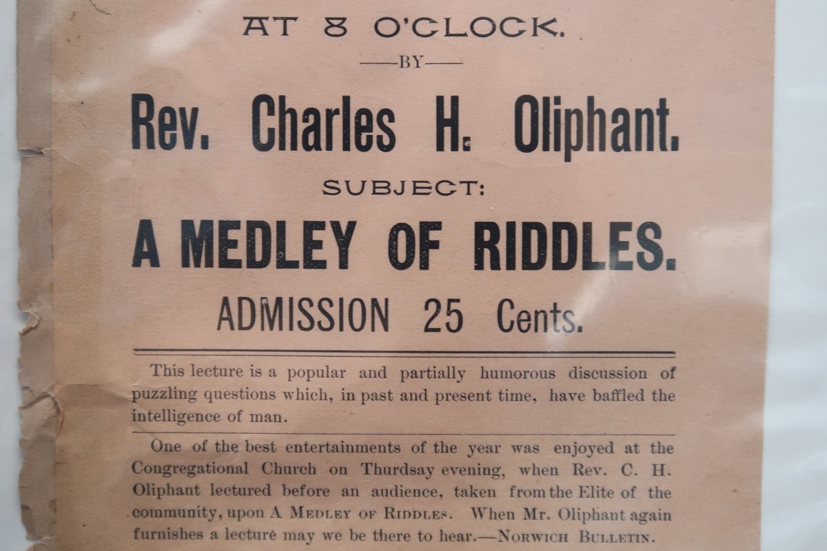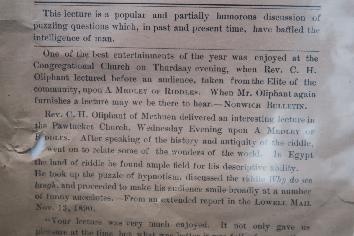 Antique Advertisment A Medley of Riddles Lecture Rev Charles H Oliphant Dec 1890