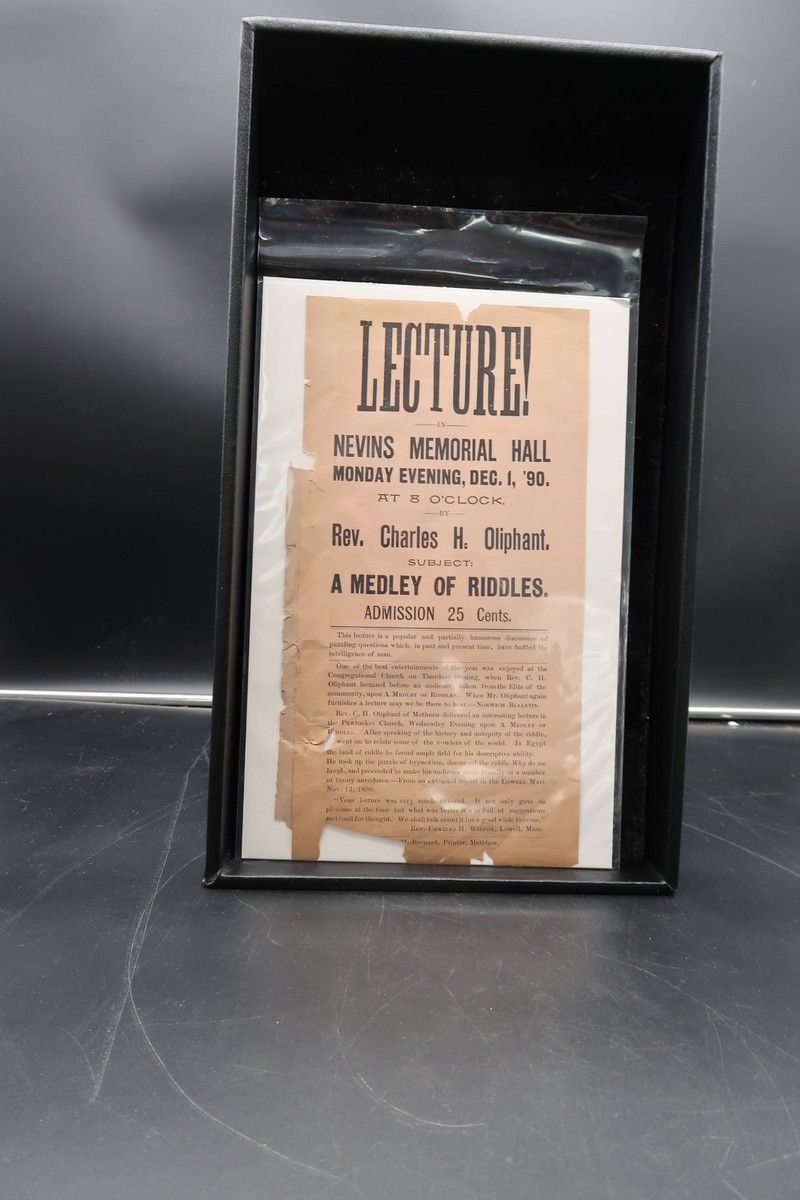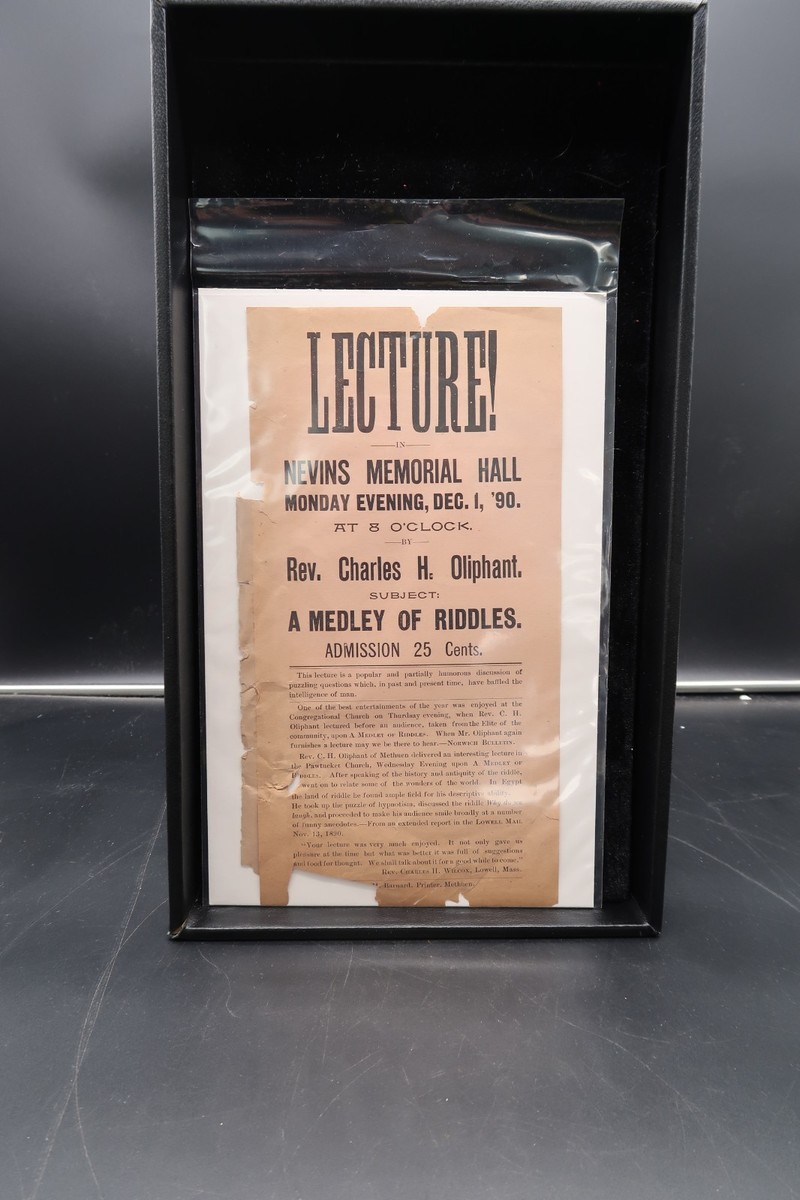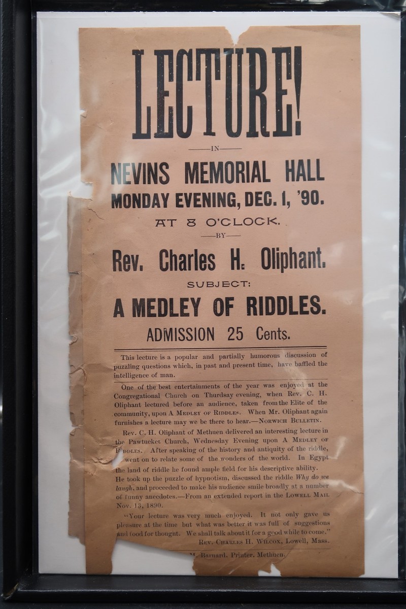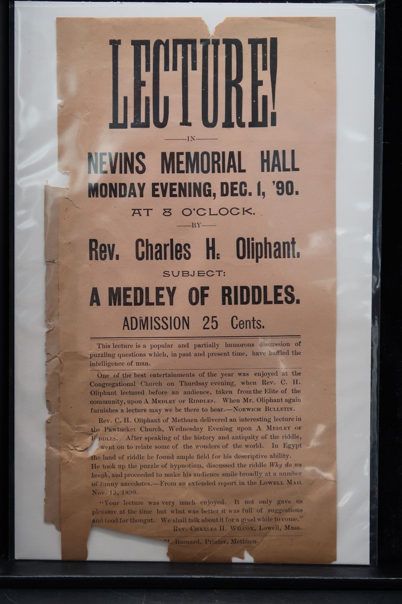 Antique Advertisment A Medley of Riddles Lecture Rev Charles H Oliphant Dec 1890