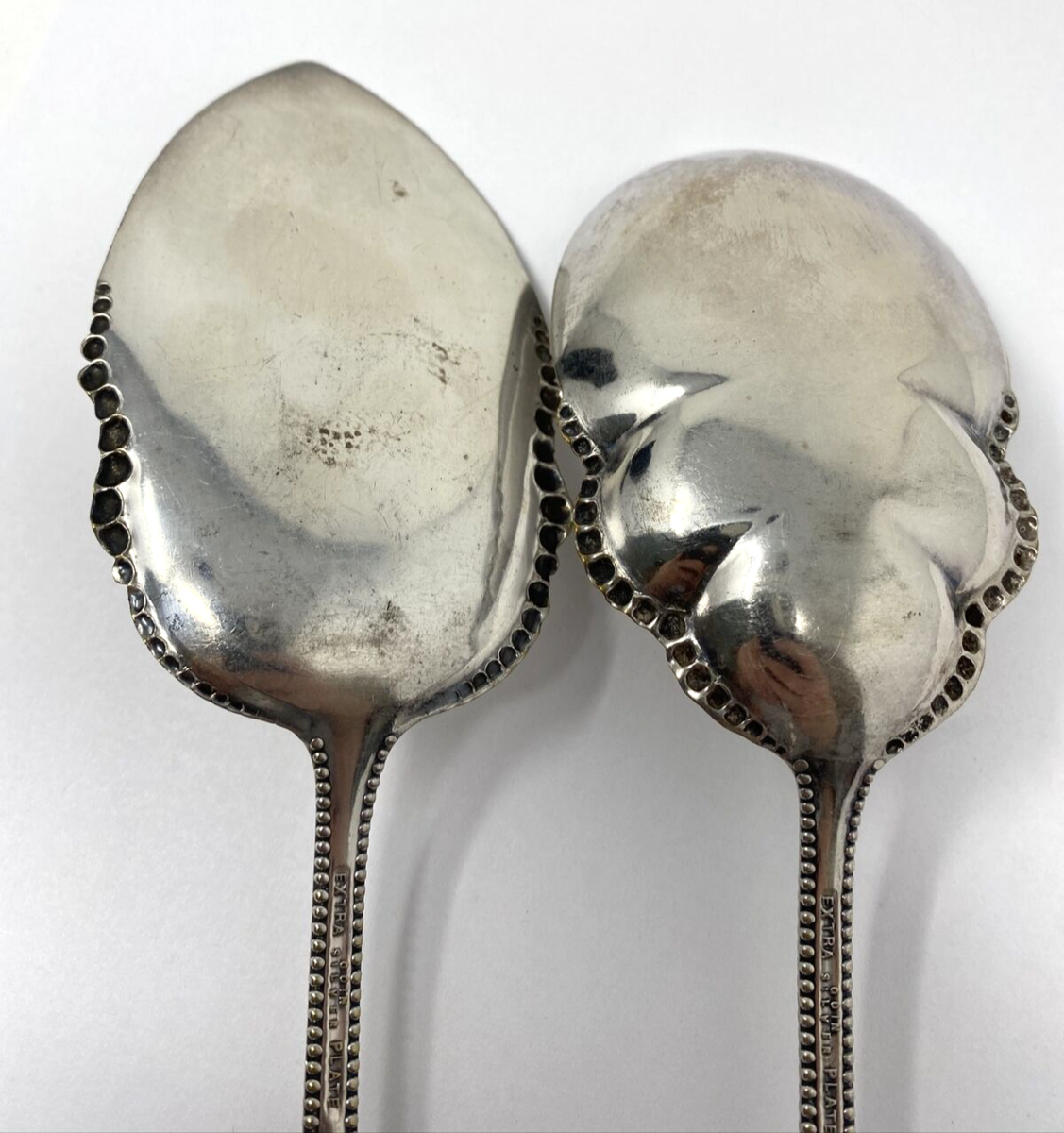 Vintage Extra Coin Silver Plated Beaded Edge Serving Set of 2