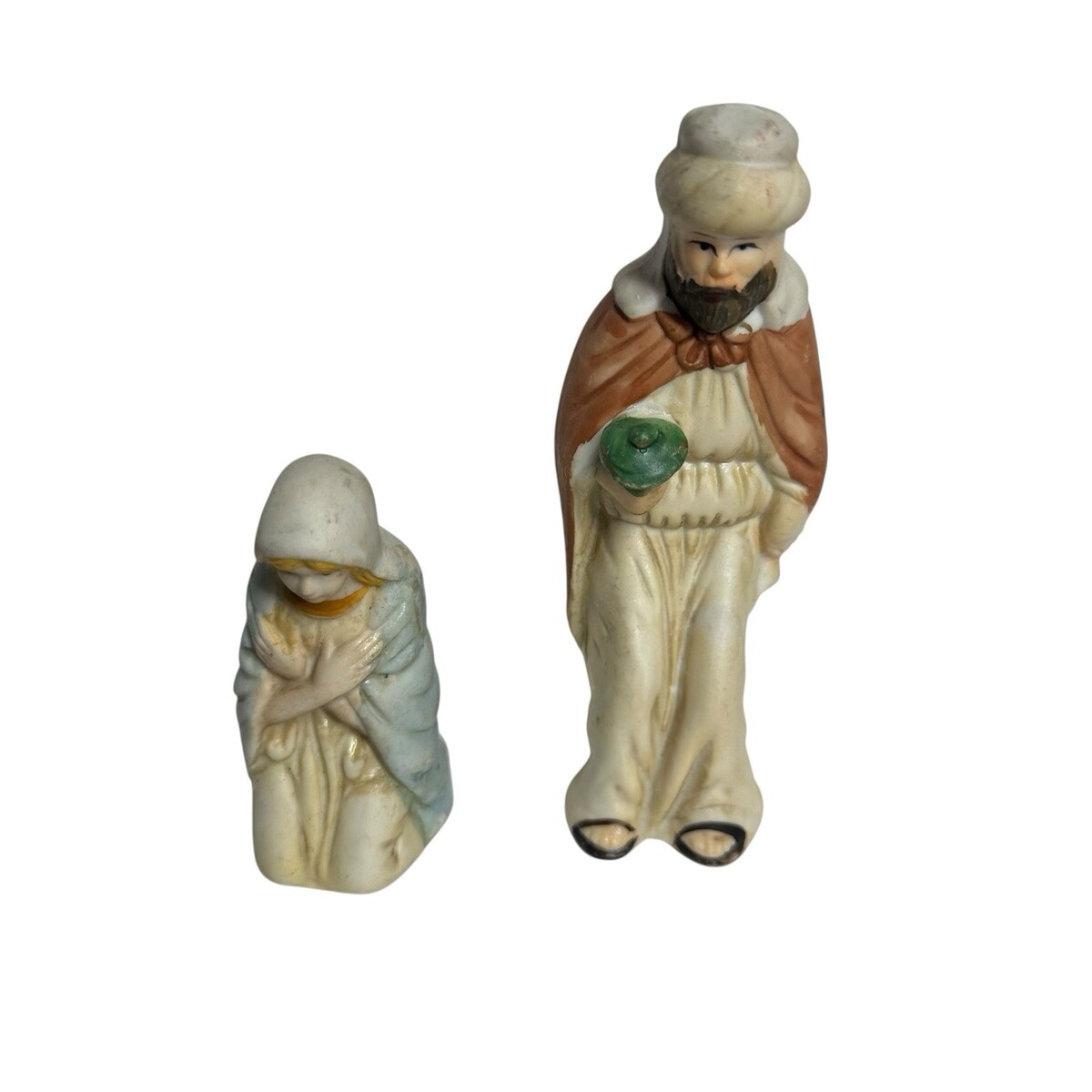 Vintage Nativity Set with Angel 8 Pieces Porcelain Taiwan 3.75"-6.5"