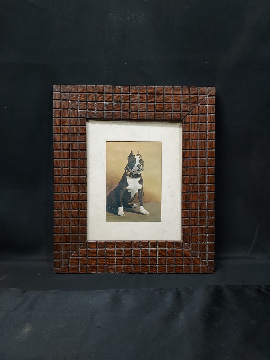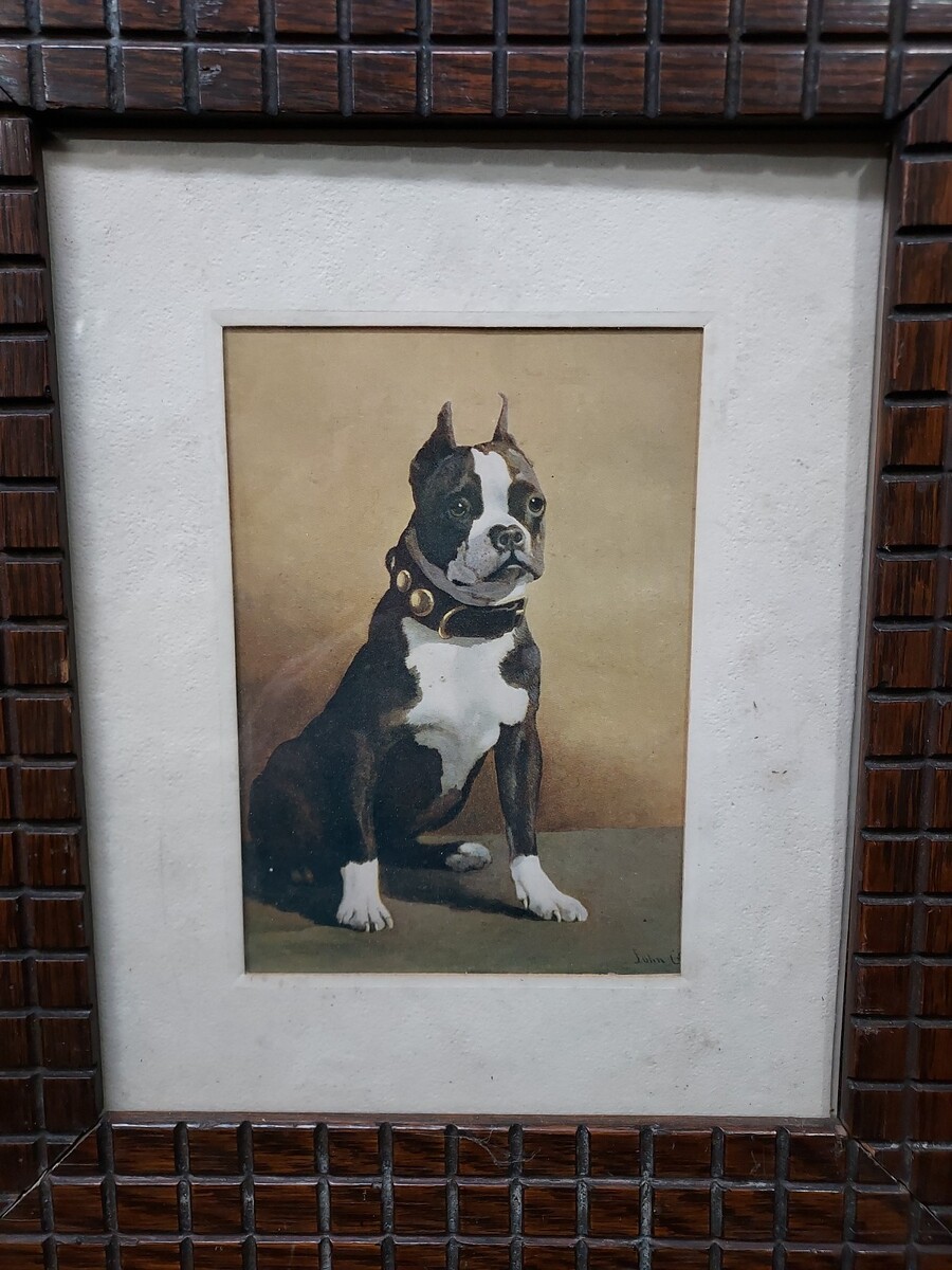 Early 1900s Framed Print - Boston Terrier Dog - By Artist John G Low. Condition is Used. Shipped with USPS Ground Advantage.