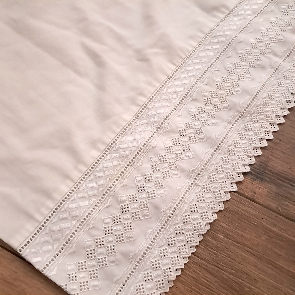 Vintage Cannon King Set 2 pillowcases Tres Grand Lace trim ivory off white cream