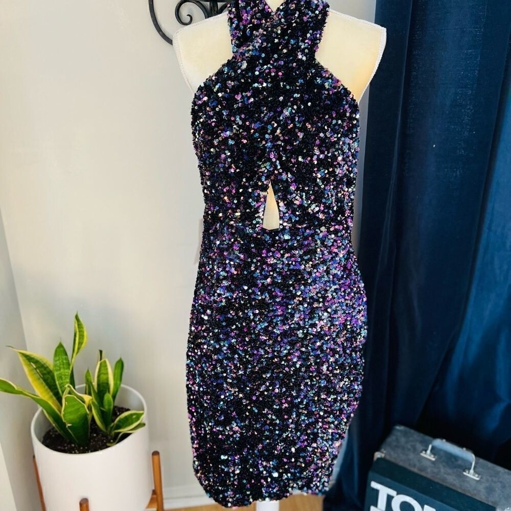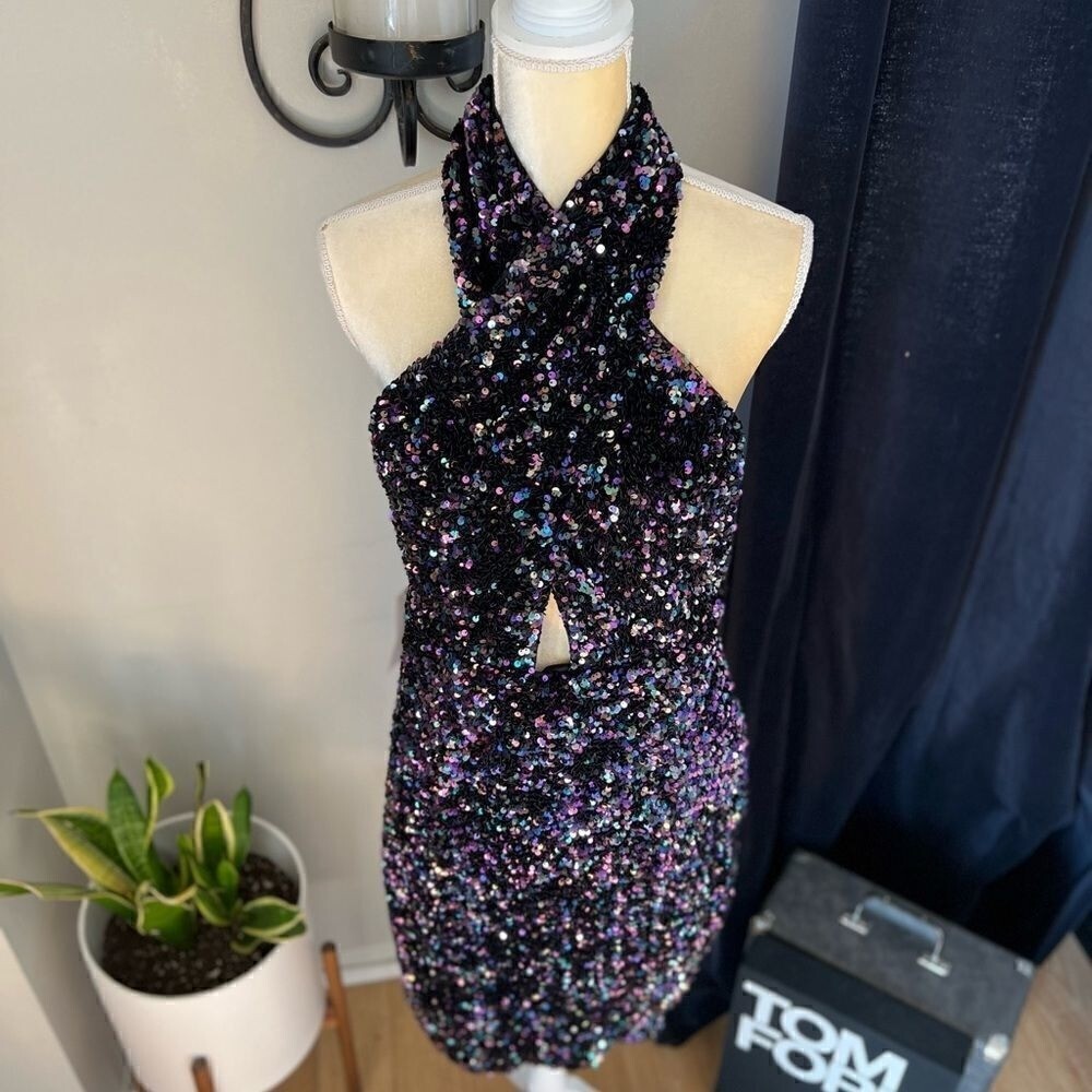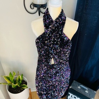Bardot The Sequin Halter Dress, Black/Multi, Black Tie, Cocktail Party Large NWT
