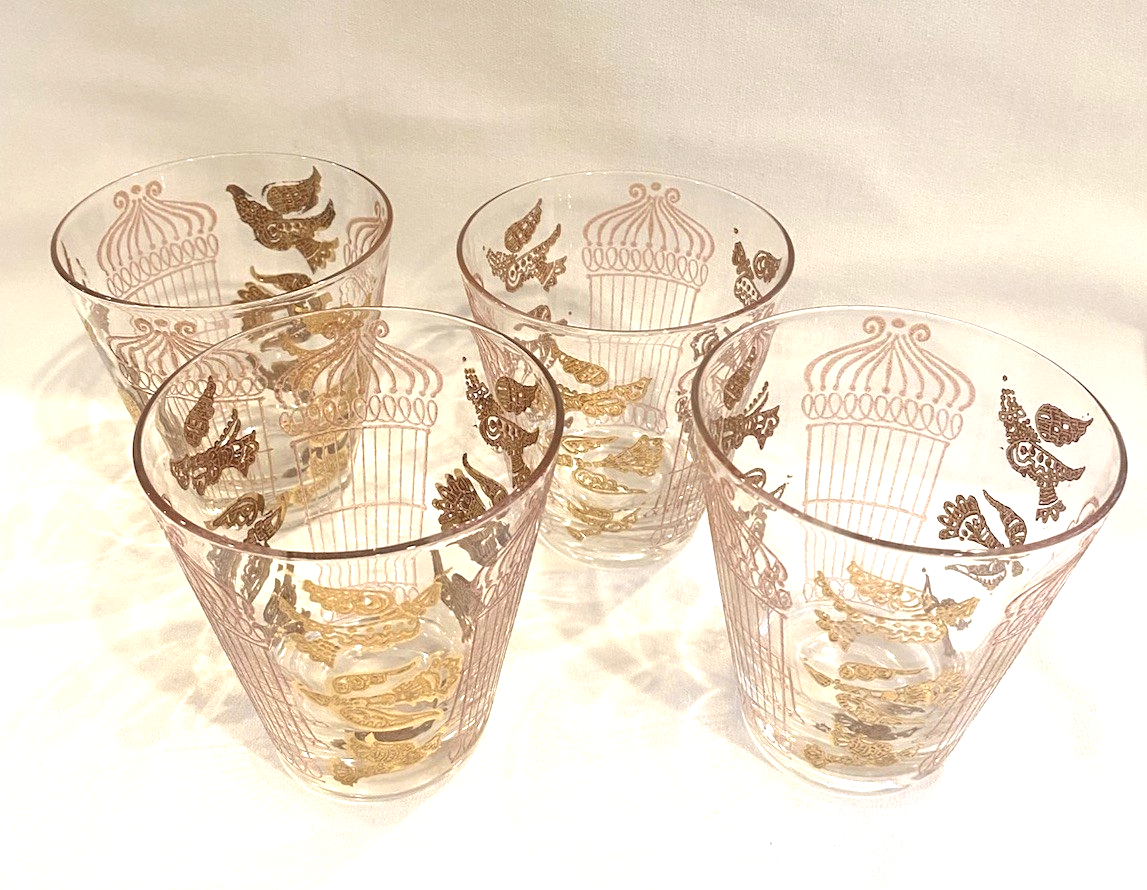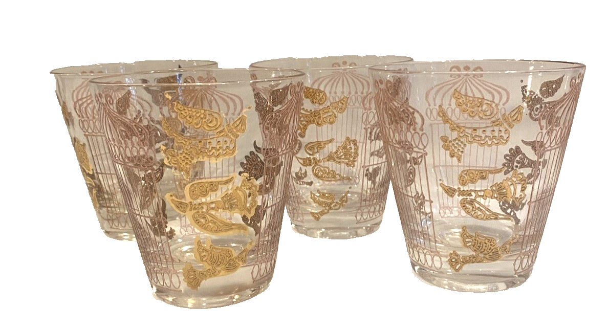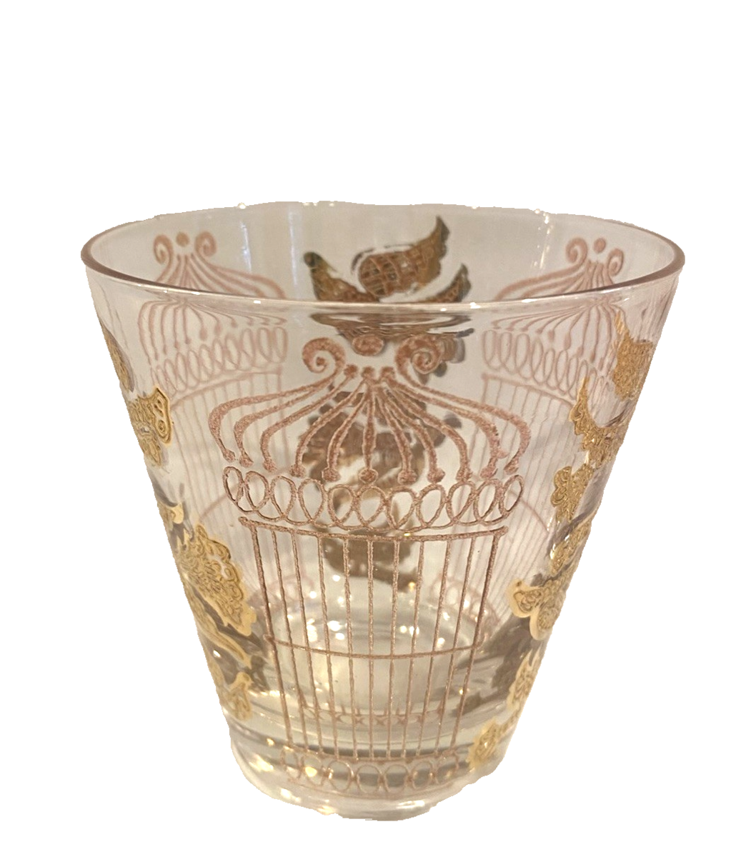 Culver 22k Gold Capri Pink Birdcage Double Old Fashioned Glasses - 4 Pc Set