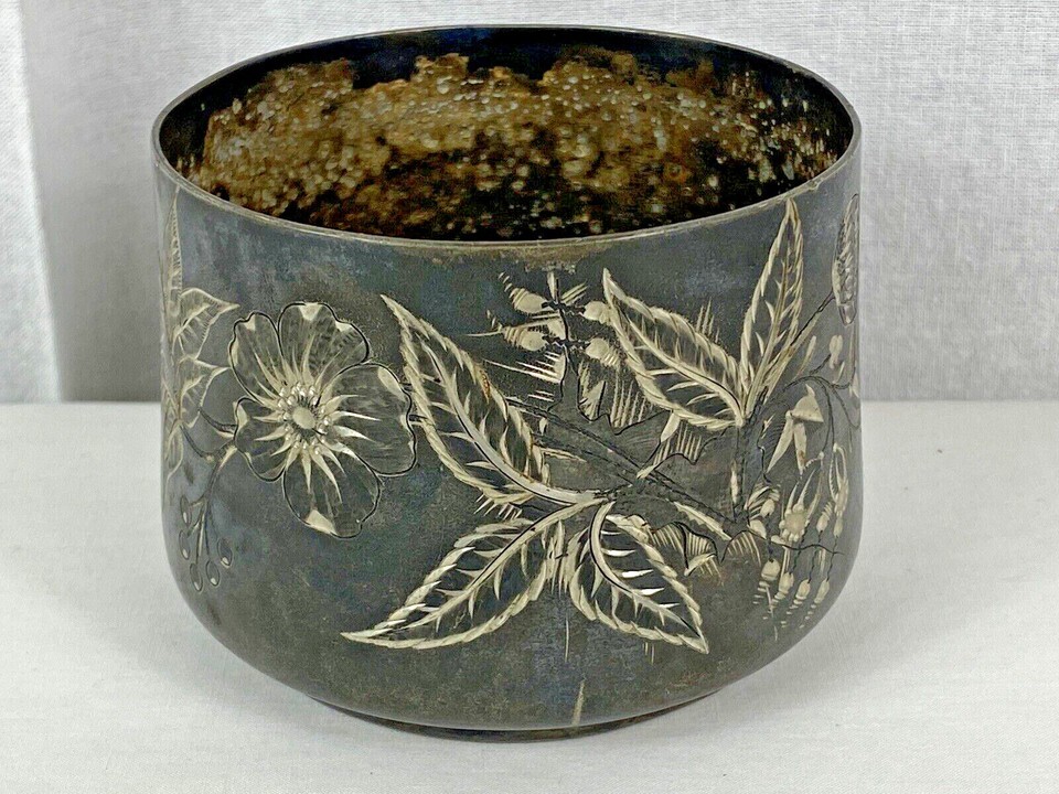 VINTAGE PAIRPOINT MFG. CO QUARDUPLE SILVERPLATE ETCHED MONOGRAM OPEN SUGAR BOWL