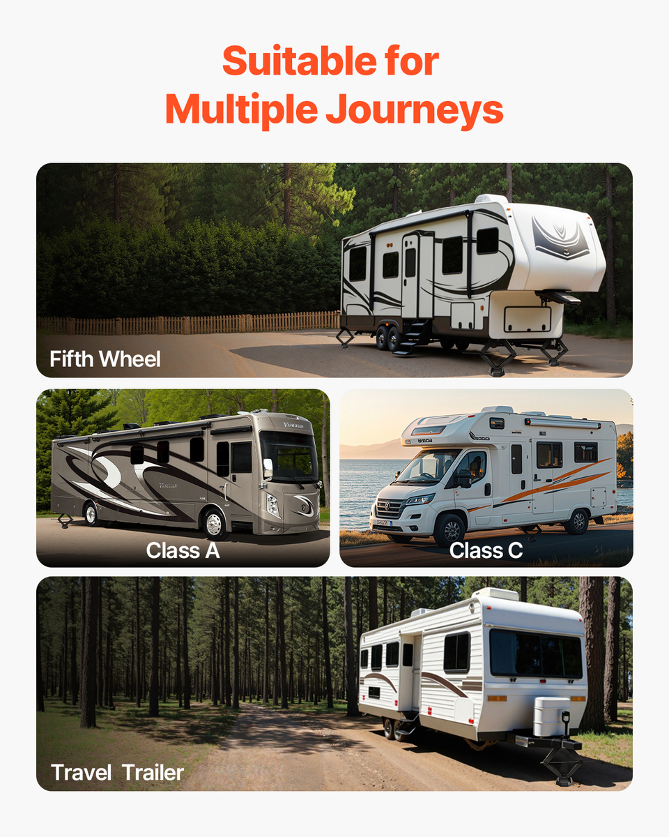 Multiple Vehicle Types: Our RV pads are suitable for fifth-wheel trailers, camping trailers, and Class A and Class C RVs. Enjoy the stability and protection for your travels with our pads.