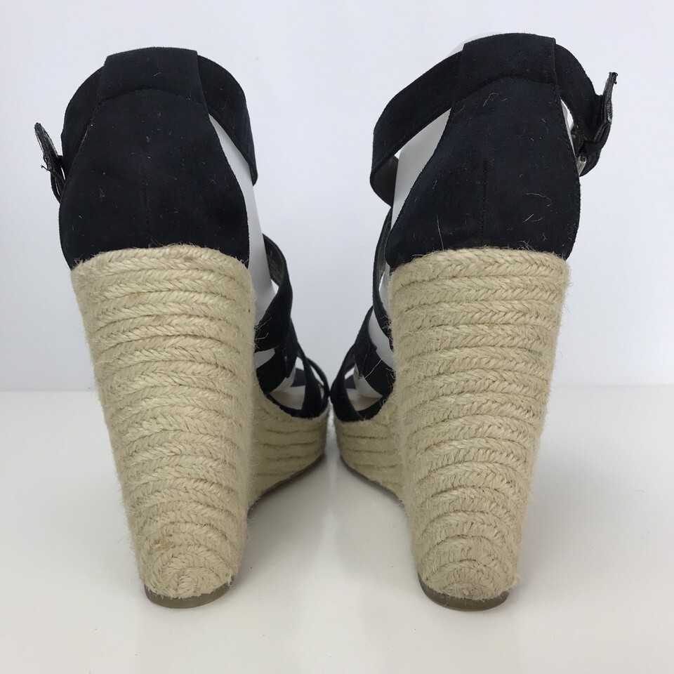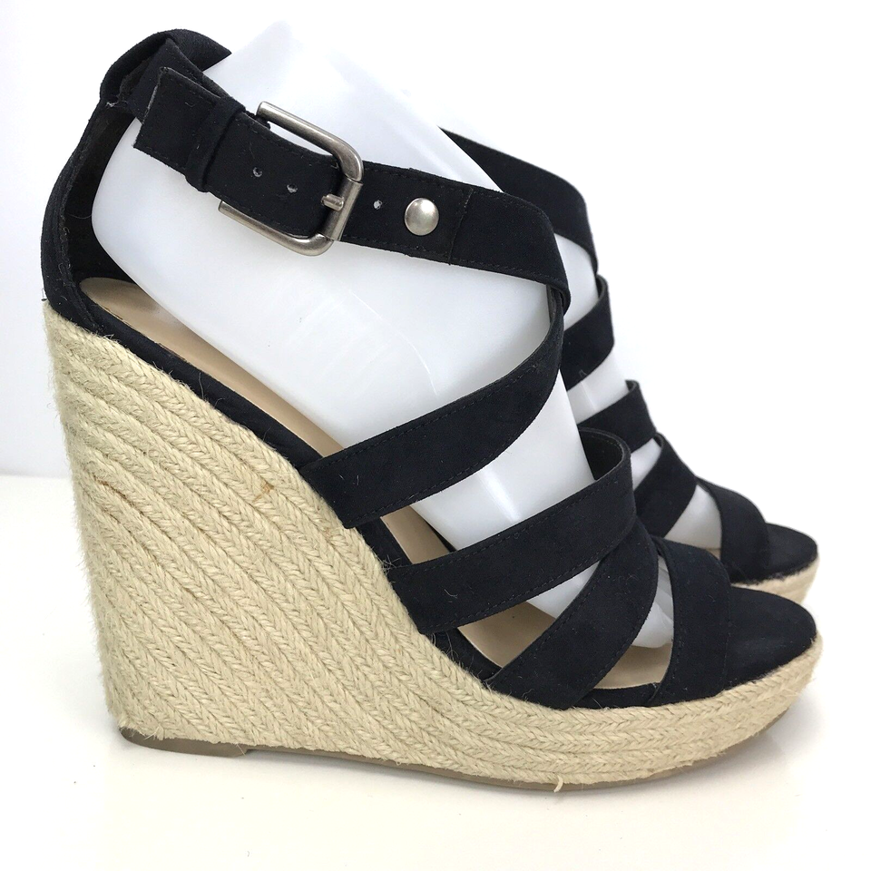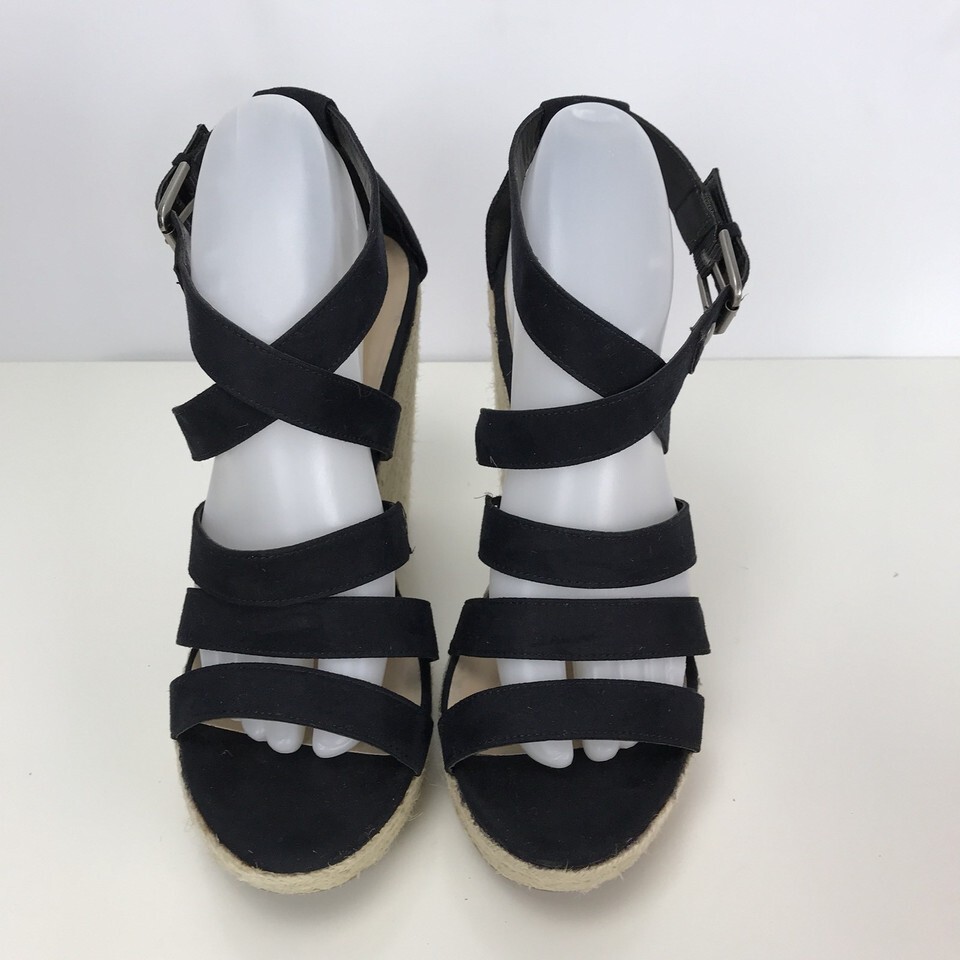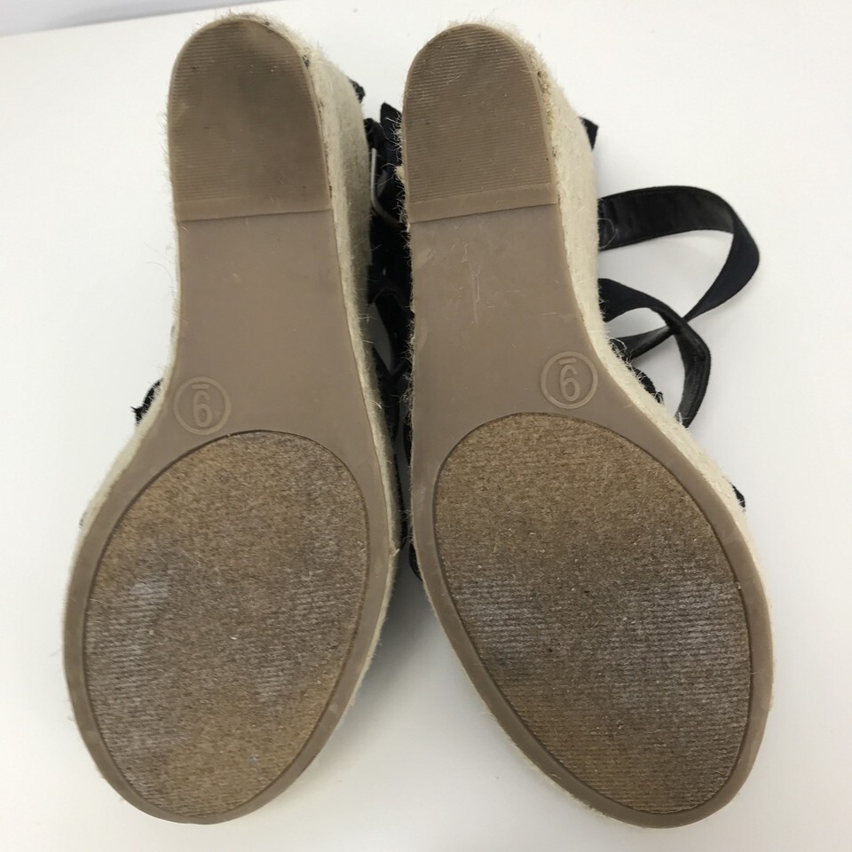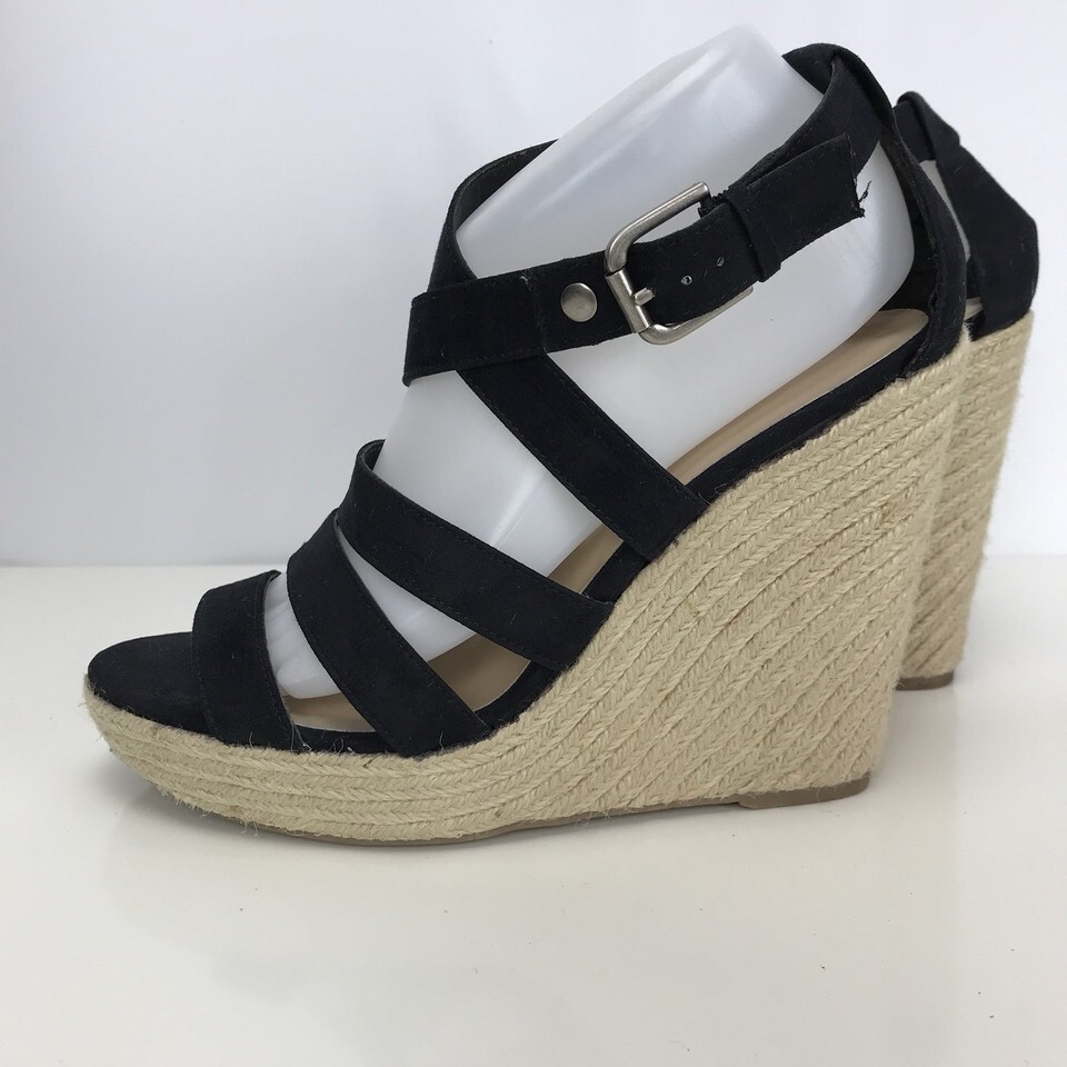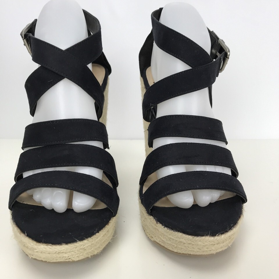 Mossimo Womens 9 M Black Wedge Heel Platform Sandals Shoes Jute Rope