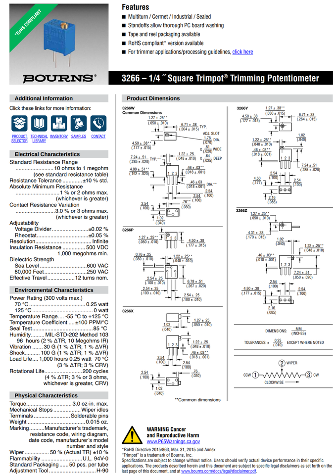5PCS 3266Y-1-202R Bourns 2k Ohm Multi-Turn Trimpot 0.25W Top Adjust Potentiometer