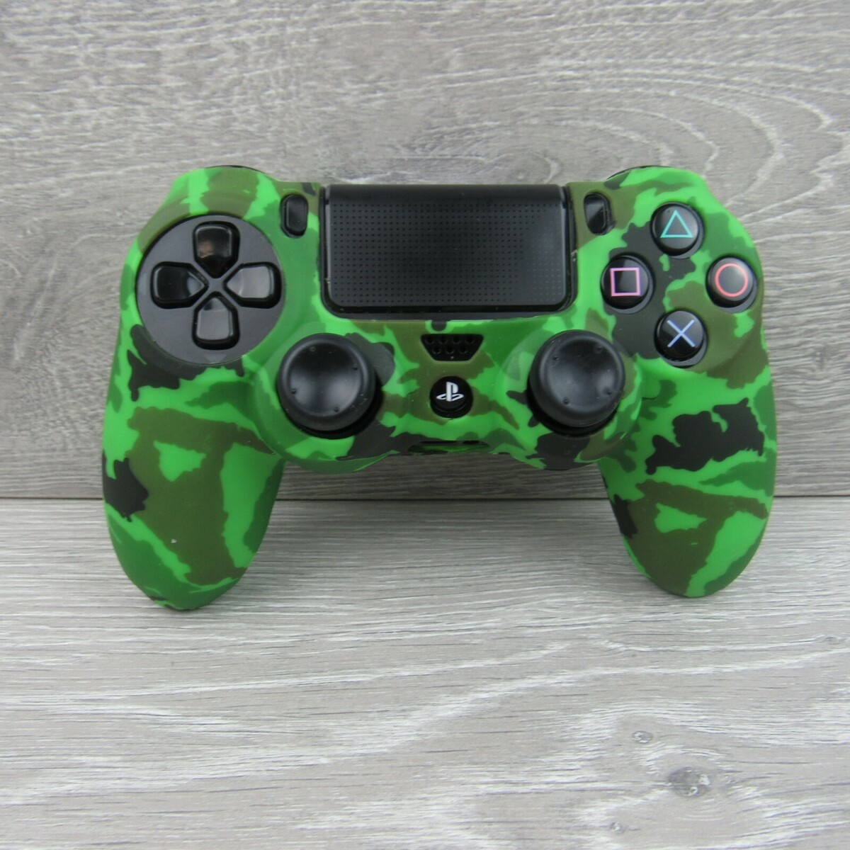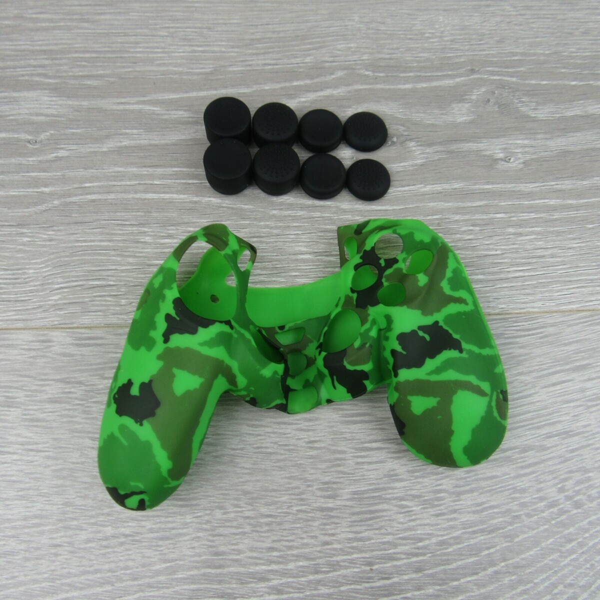 Silicone Grip Green Camo Non Slip + (8) Thumb Grip Caps For PS4 Controller