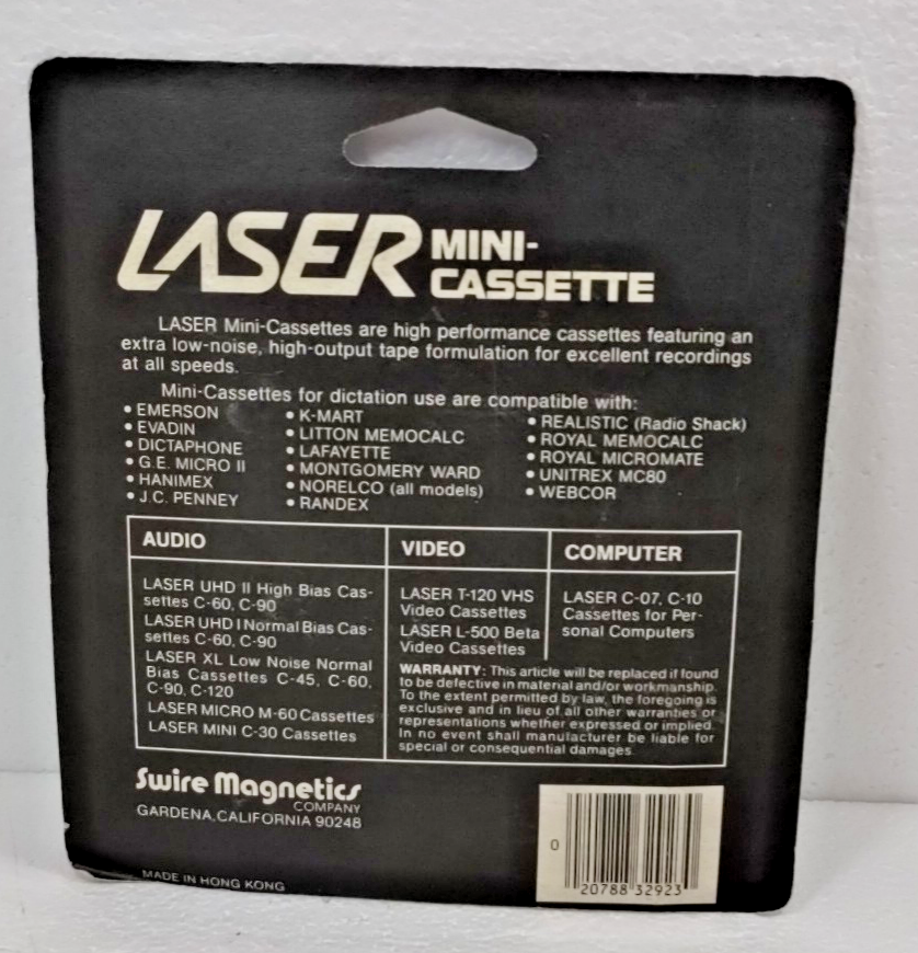 2 Pack Laser Mini - Cassettes 30 Min For Dictation Machines Micro Recorders