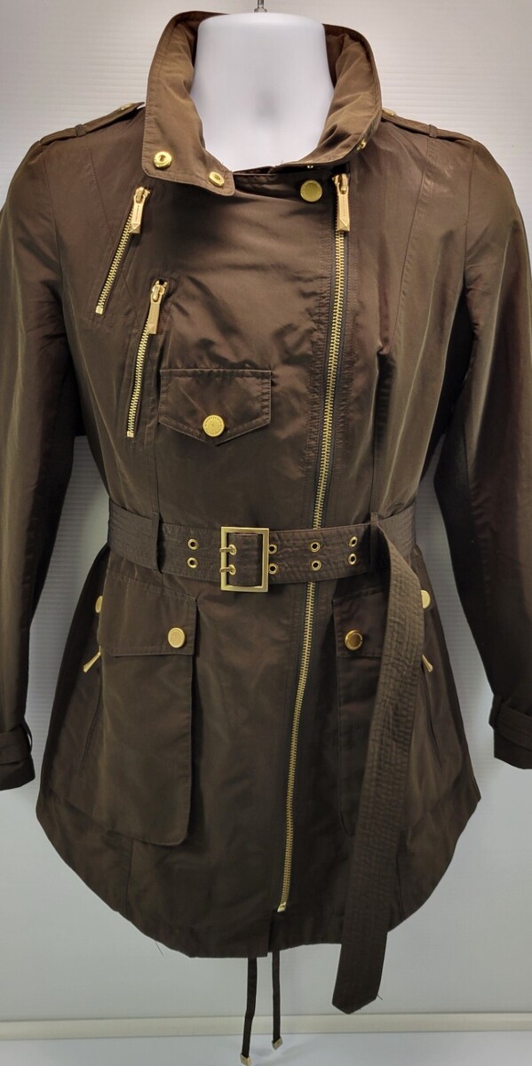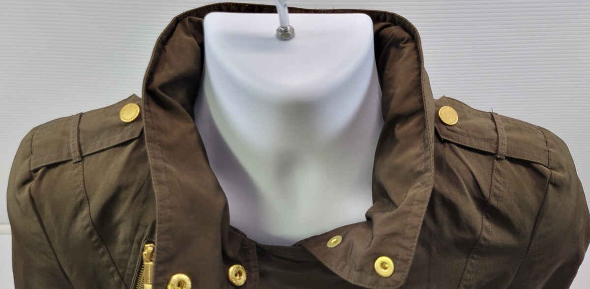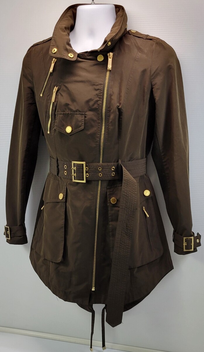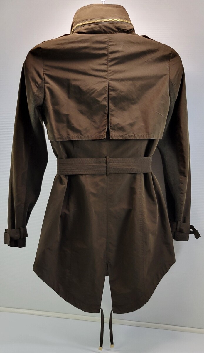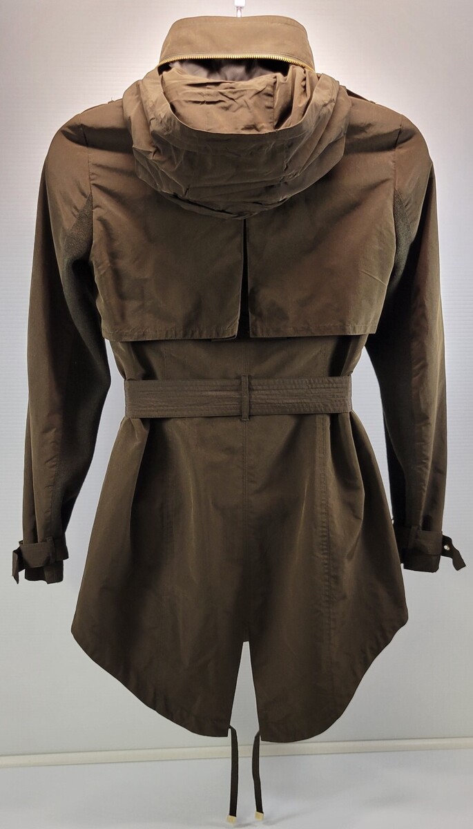 A) BCBG Maxazria Woman Army Green Hooded Field Belted Jacket Small