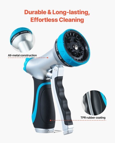 High-Quality All-Metal Construction: Made from premium zinc alloy and TPR rubber coating, this hose nozzle ensures durability, rust and corrosion resistance, and can withstand daily drops and impacts. It becomes your reliable partner for long-term irrigation and cleaning needs.