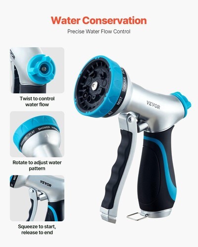 Flexible Water Pressure Adjustment: The garden hose nozzle sprayer is equipped with a flow control knob. You can easily adjust the water flow to suit various tasks. This feature helps conserve water while ensuring efficient irrigation and cleaning.