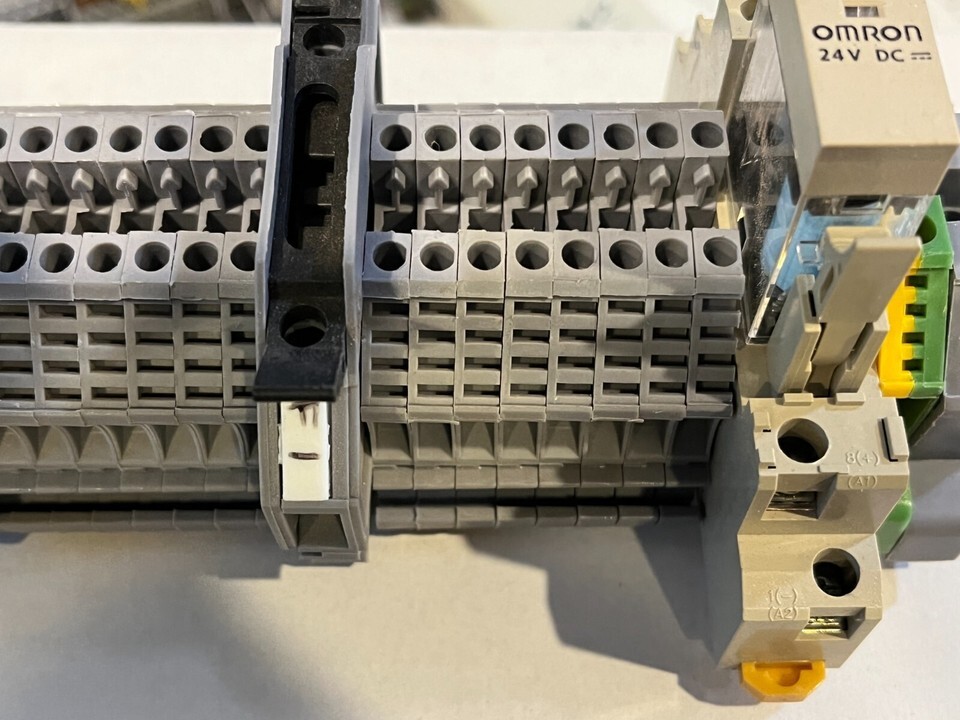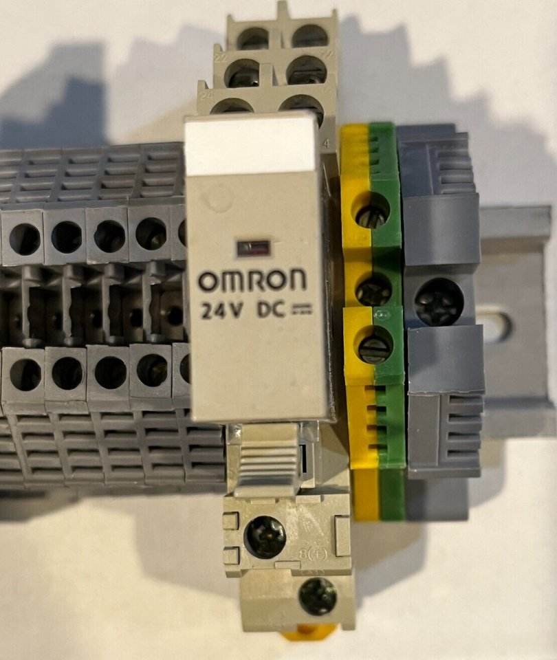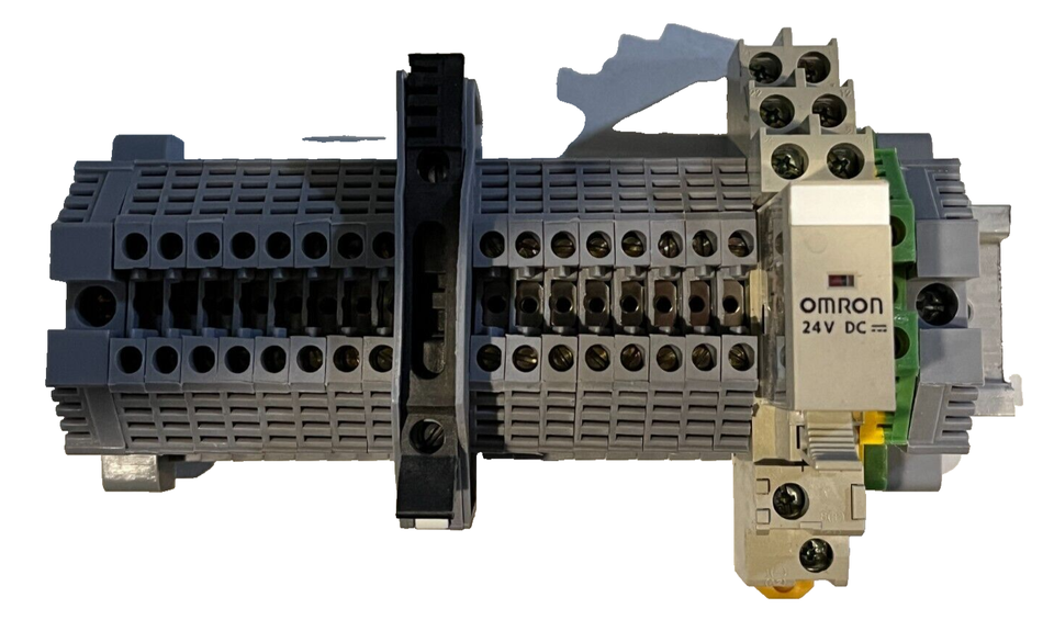 16 Screw Terminal Blocks 6" DIN Rail Omron G2R-2 Relay, Fuse Holder 5x20, Grn Te