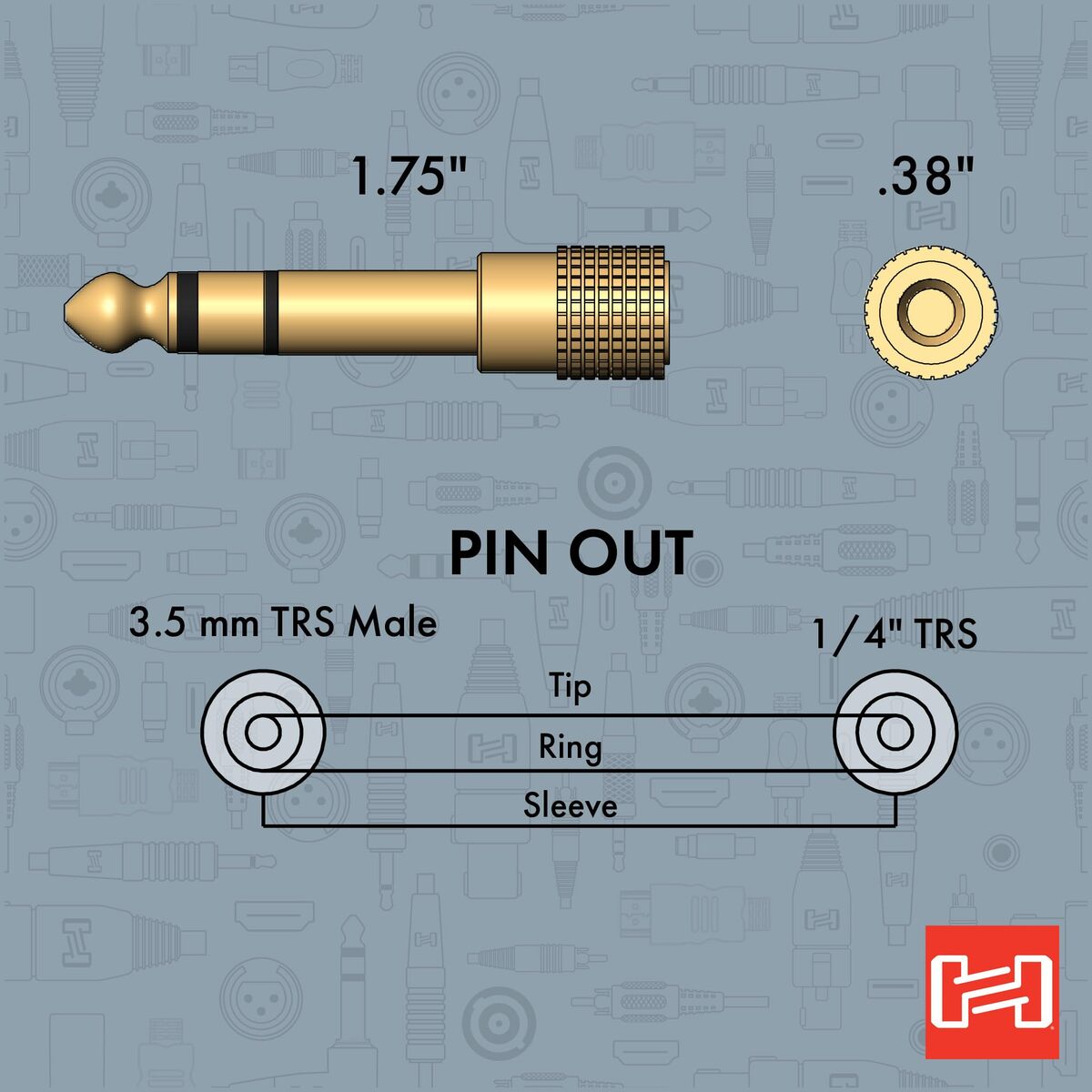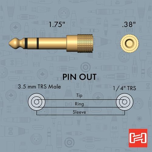Headphone Versatility: Converts 3.5mm TRS to 1/4" TRS headphone jack. |