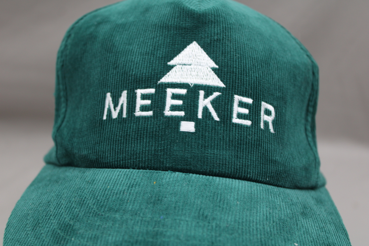 Up for sale is a vintage corduroy hat. It has a green base colour with the Meeker Forestry logo stitiched into the front in whtie.What a great hat do not miss out on it.