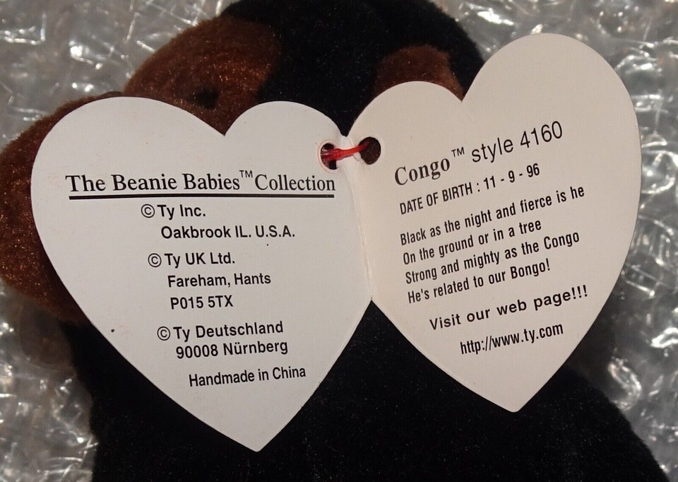 Ty Beanie Baby Congo the Gorilla 1996 RARE Original - 4160 P.V.C. Pellets
