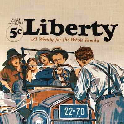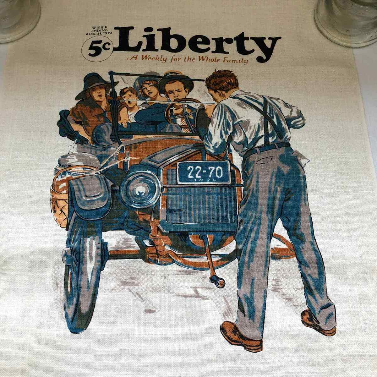 1977 Liberty Magazine Tea Towel Calendar Vintage Linen 1920s Auto Artwork Decor