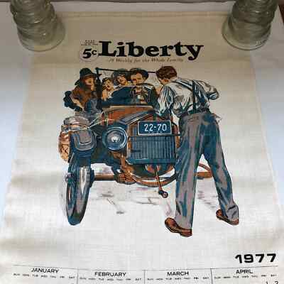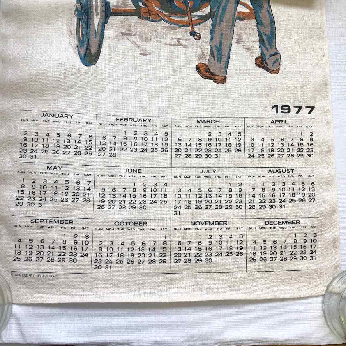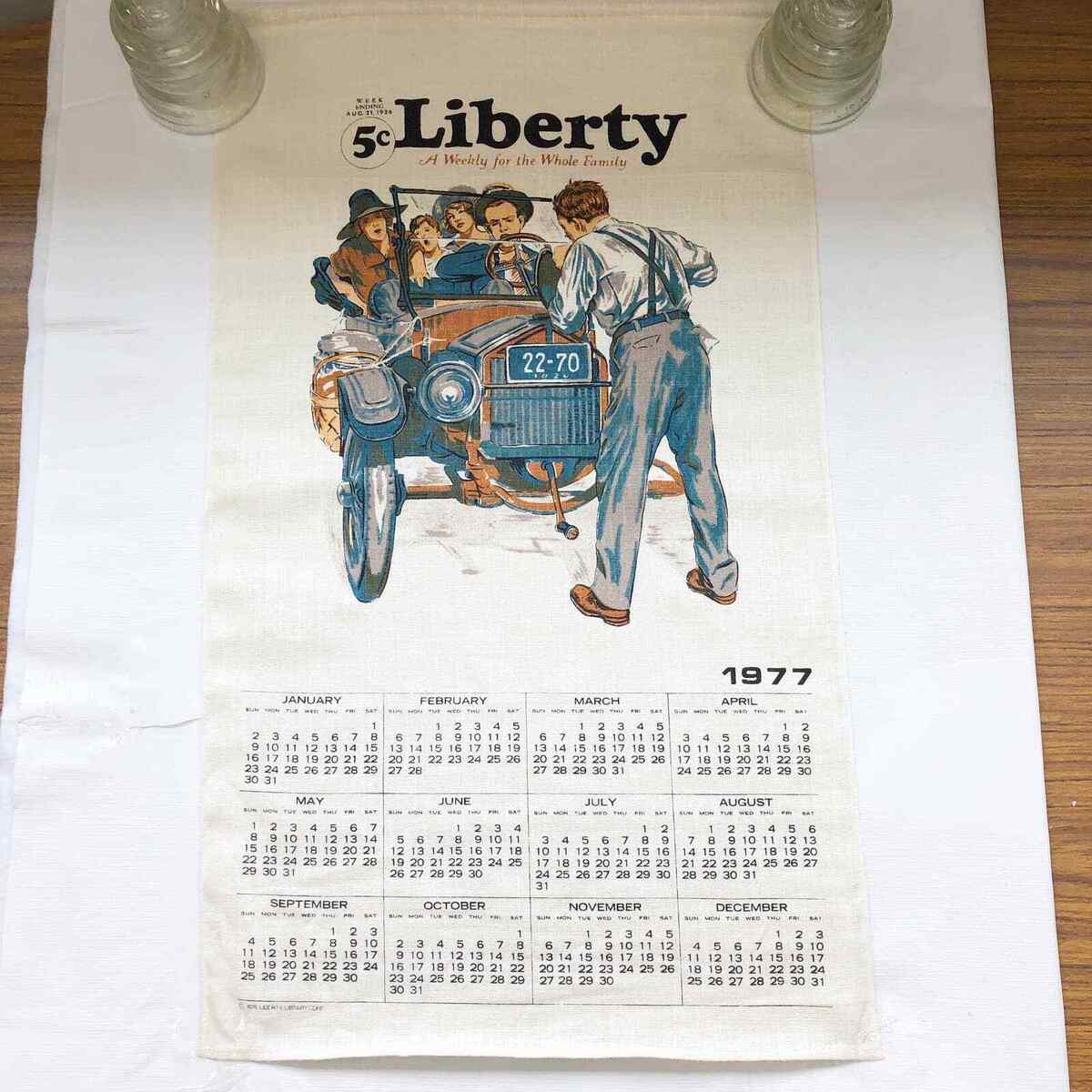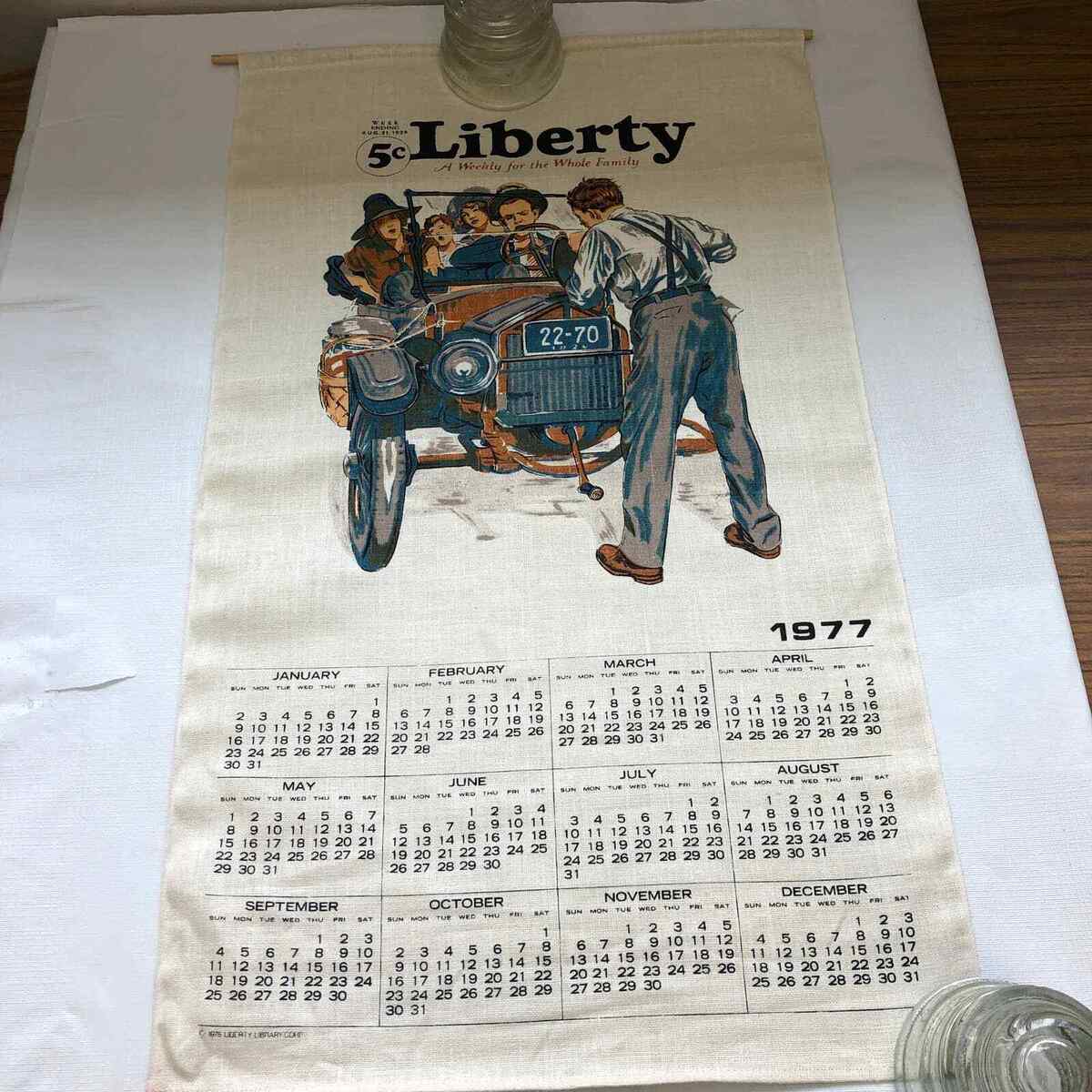 1977 Cloth Tea Towel Wall Calendar 1920s Automobile Family Liberty Weekly