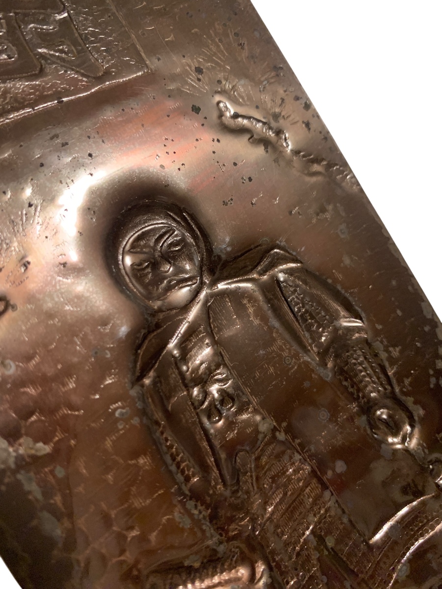 Uesugi Kenshin copper plate decoration, interior decor, Kasugayama Castle, Niigata Prefecture, copper, antique art, sculpture, antique, copper. This retro wall decoration can also be hung. This is a very old, thin copper plate with a design of a Japanese historical figure.