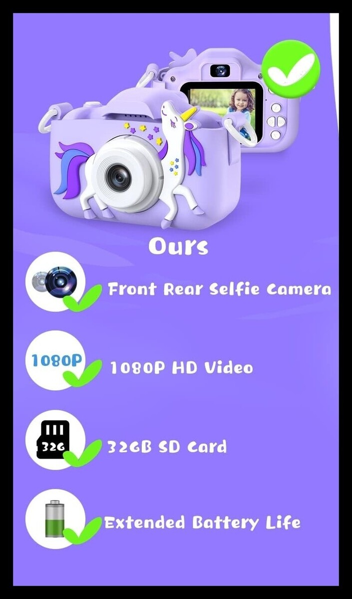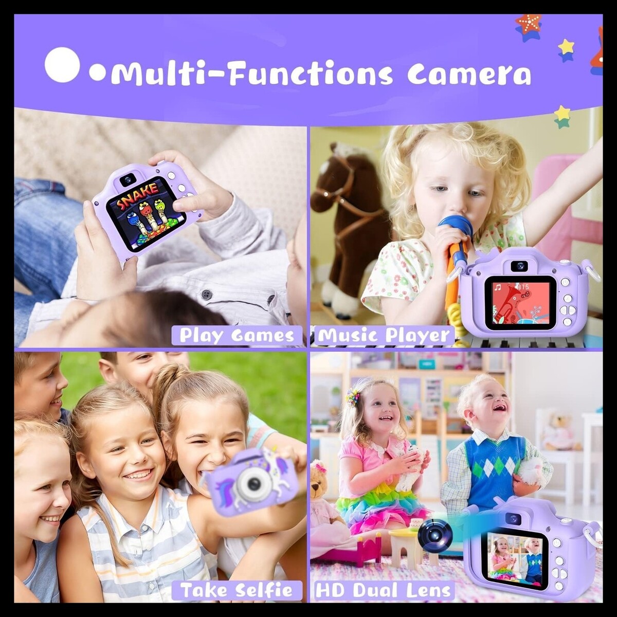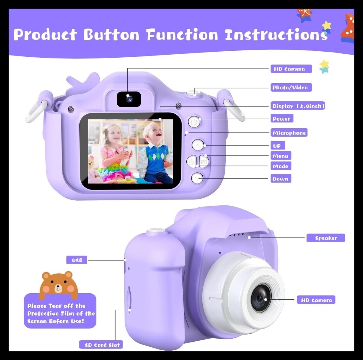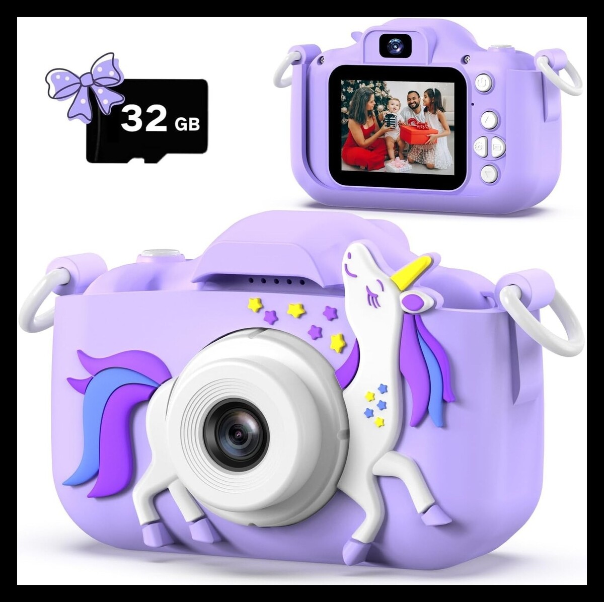 NEW Kids Purple Unicorn Digital Video Camera 32GB SD Card
