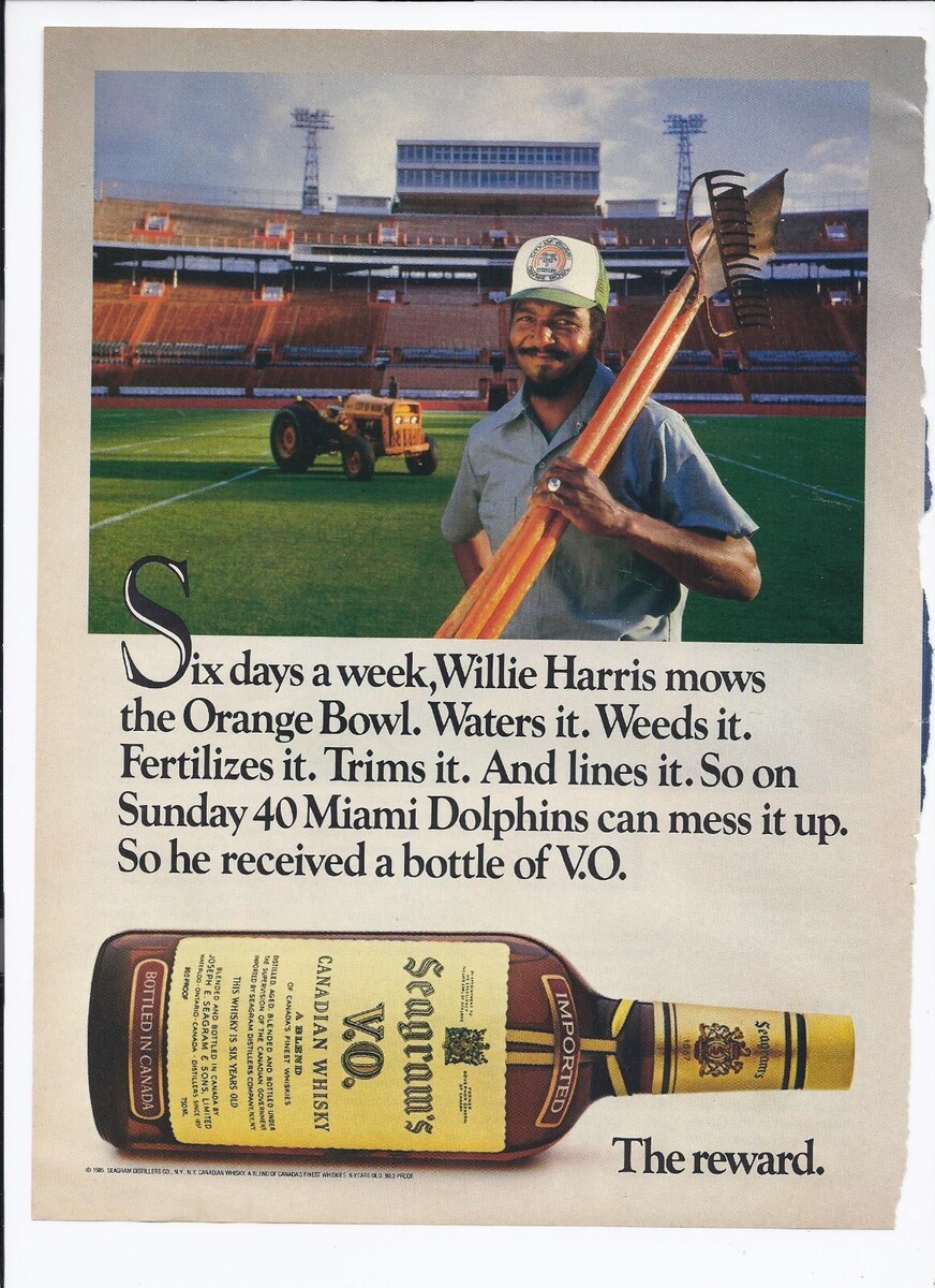 1985 Seagram's V.O. Scotch Canadian Whiskey Print Ad Vintage football 8.5" x 11"