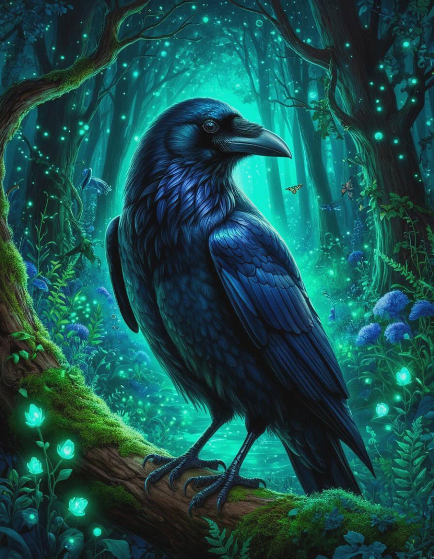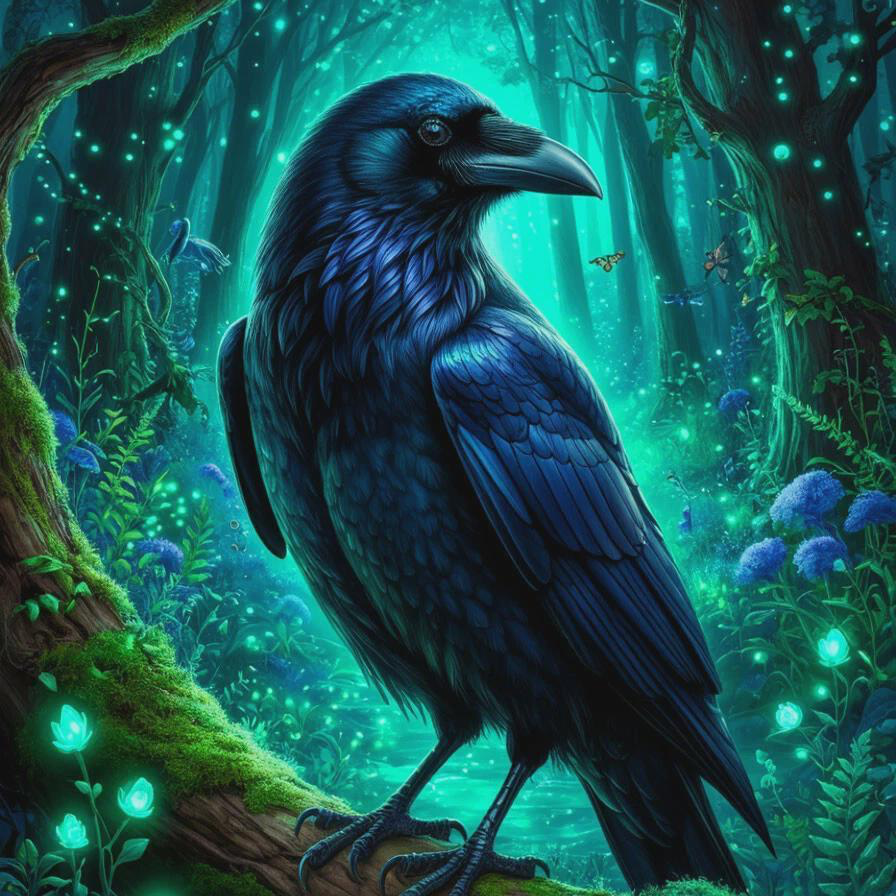 Rocky is no ordinary raven—he is a mystical companion of the enchanted forest, with feathers that shimmer like midnight silk and eyes that gleam with the knowing light of hidden worlds. Perched between branches or gliding silently across the treetops, Rocky is a messenger of the unseen, carrying whispers of magic wherever he flies.