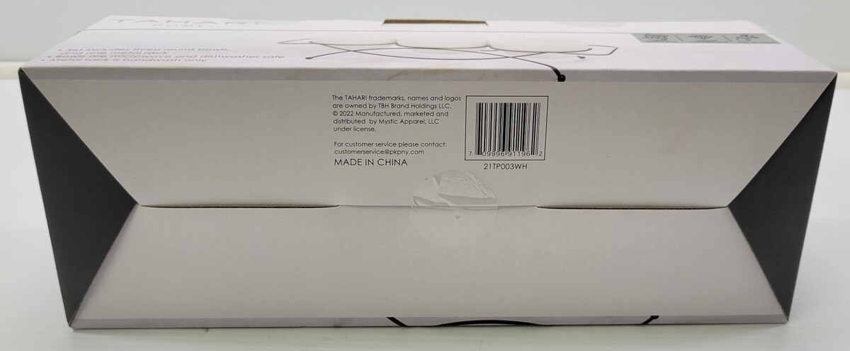 *D) Tahari Home Serving Set 3 Porcelain Bowls with Metal Rack