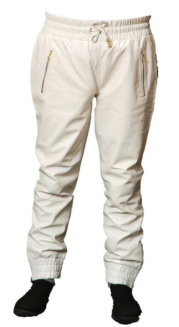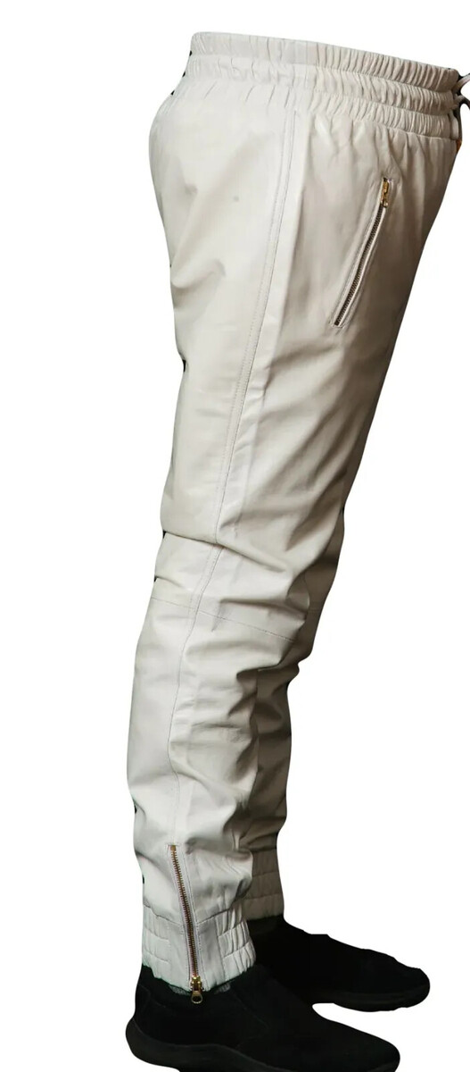 White Wear Men Trouser Genuine Leather Lambskin High Track Pants Joggers Quality