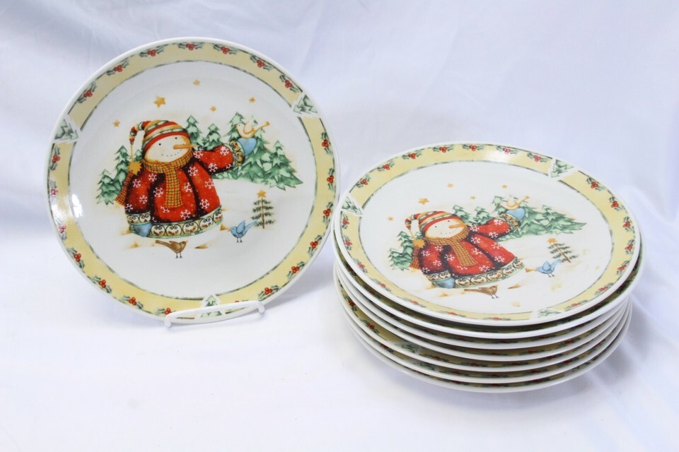 Home Snowman Outing Debi Hron Christmas Dinner Plates 10" Lot of 8 Xmas