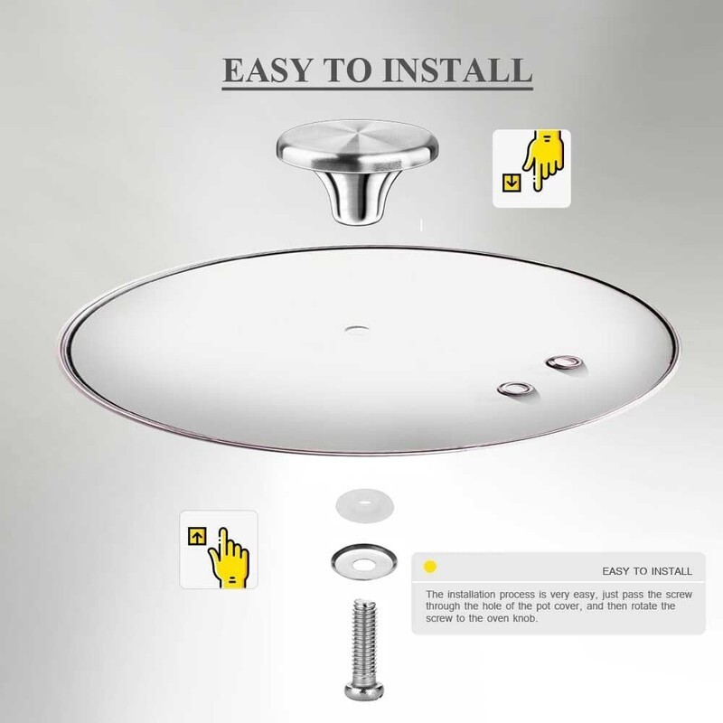 ? EASY TO INSTALL - The pot lid knobs are suitable for 6 mm lid mounting holes. The screws is easy to fix,just put the knob, rubber gasket and metal gasket correctly,and then use screw to tight them.