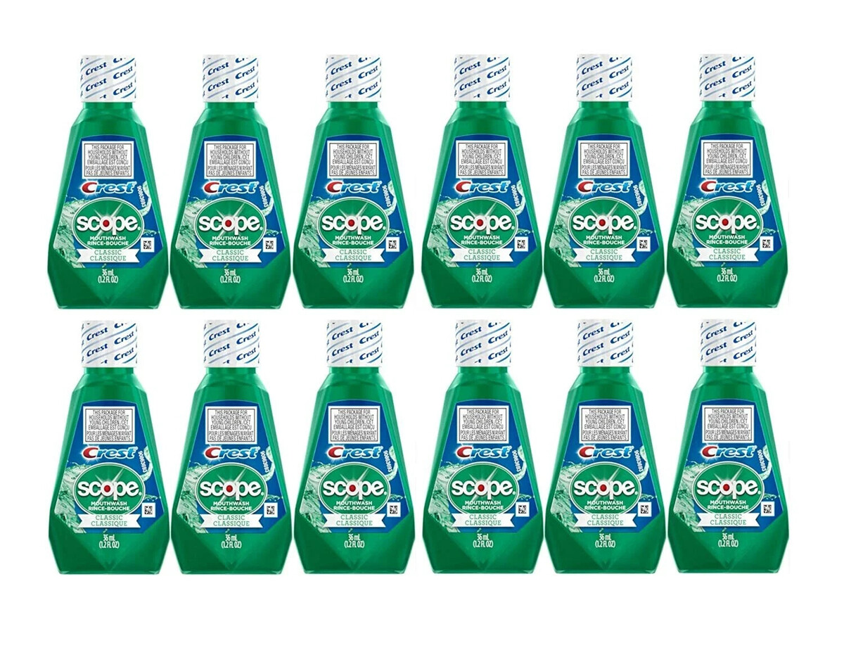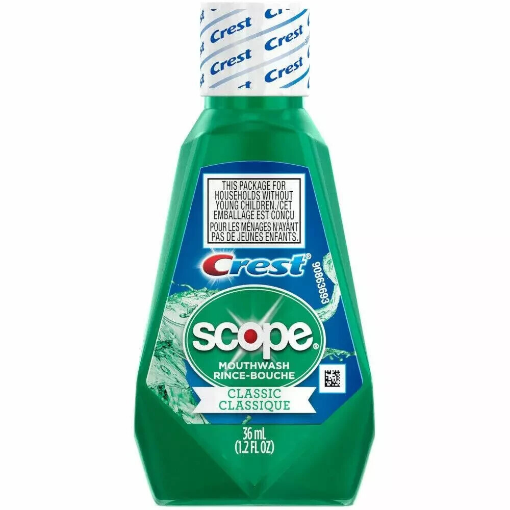20 Pack, Crest Scope Classic Mouthwash Travel Size 1.2 oz. Original Mint Flavor