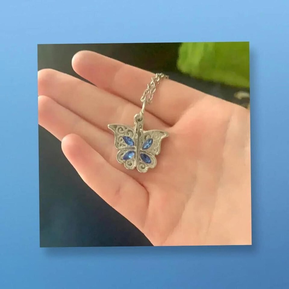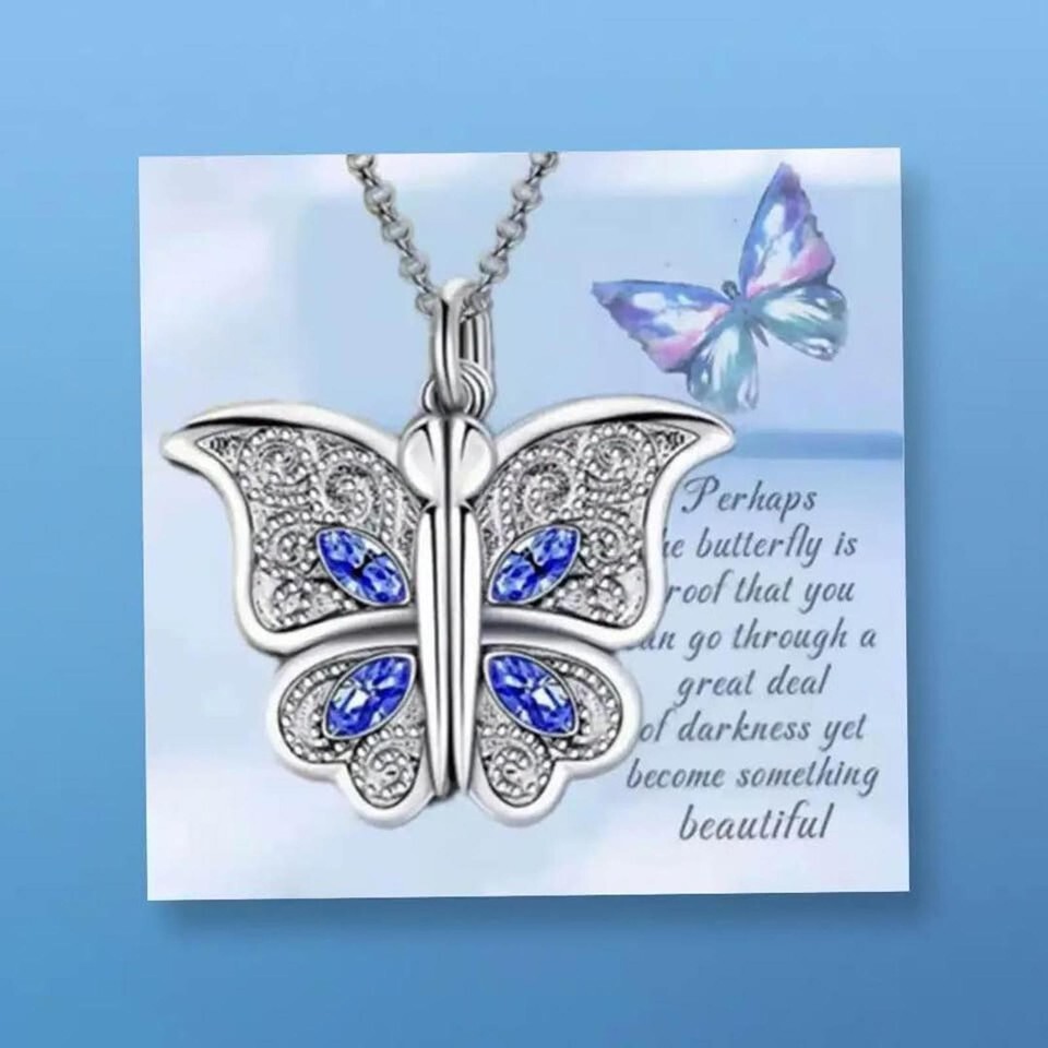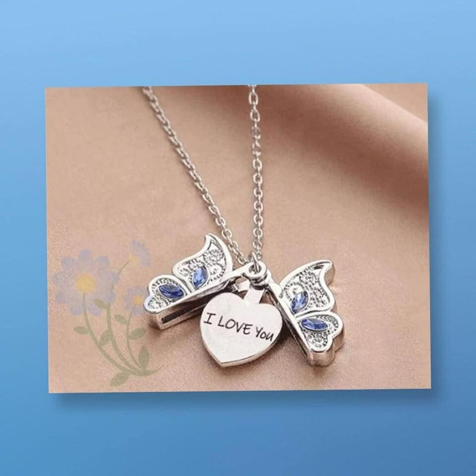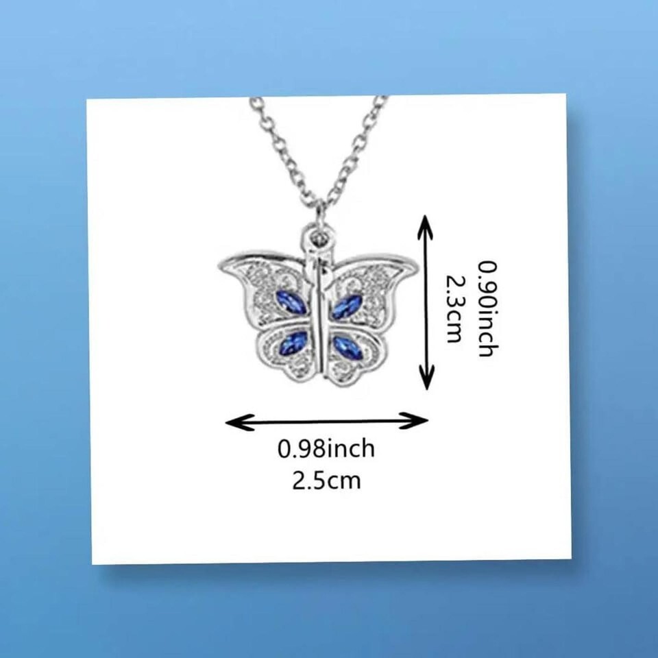 New Beautifully Designed Butterfly ? Necklace with "I Love You" message inside with Blue Rhinestones