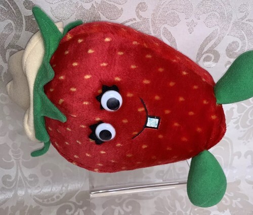 Condition: Used. Eyes have some scuffs. Eyes move when you move the strawberry ?. Please review all pictures before purchasing because they are part of the description and helps to assess condition).
