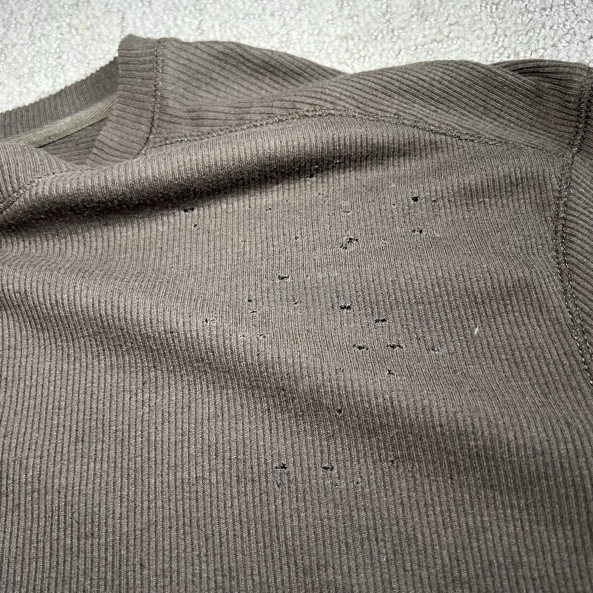 All Saints Men?s Ribbed Distressed Holes T Shirt Sz L Oversized Long Line Brown