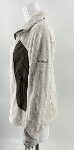 Columbia Womens Fleece Interchange Jacket Size L Cream Brown Full Zip Fuzzy Soft