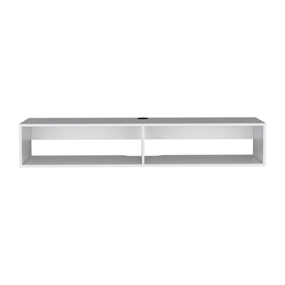 Versatile Use: With its 59-inch width, this wall shelf accommodates TVs up to 65 inches. It offers two open storage spaces, perfect for organizing your router, set-top box, DVD player, CDs, remote controls, gaming consoles, books, and decorative items