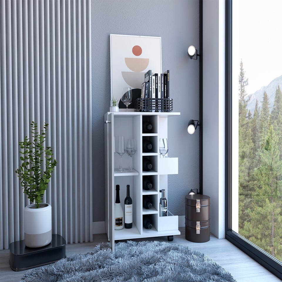 White Bar Cart: 32"H, Storage, 4 Wheels